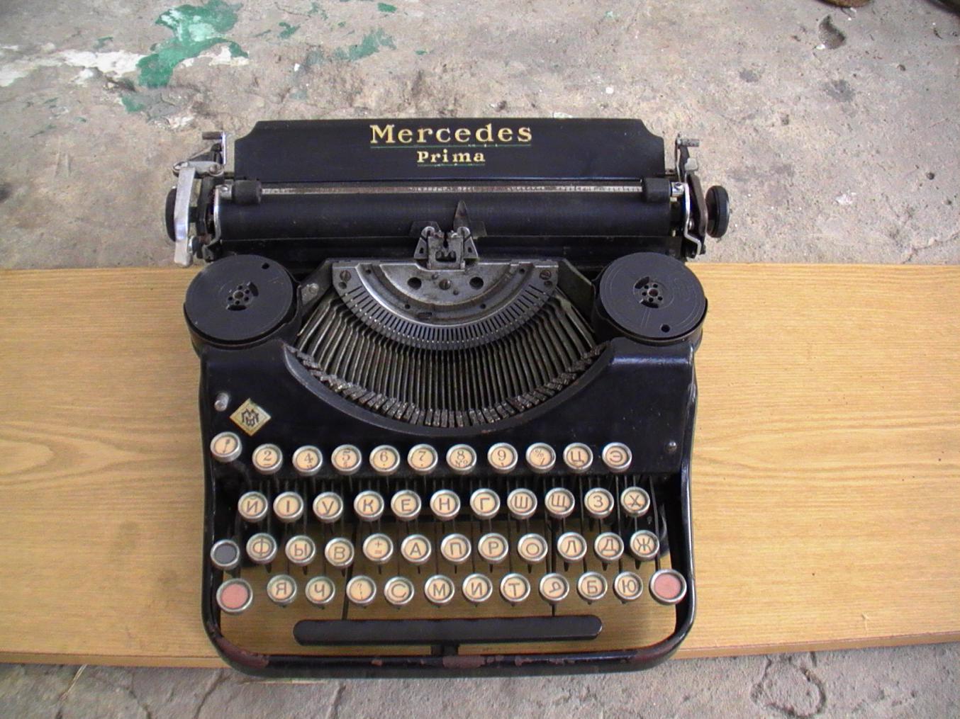 Сколько стоит такой вариант печатной машинки "Мерседес" Машинка в рабочем состоянии, отсутствует расходник лента для печати, шрифт русский весь на месте.