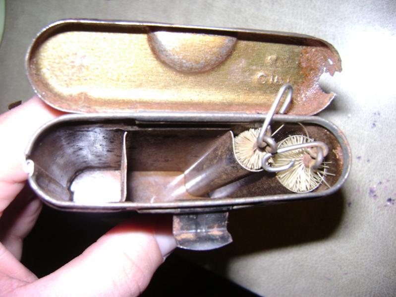 Пенал для чистки к98, если не то поправьте... В чердачном сохране, по комплектации две родныще щеточки, метал крепчайший, клеймо CMR 44, лежал на чердаке, на боку и чуть поржавел с боку на крышке ,а так все хорошо в нутри все гуд. Все на фото. Цена 620 грн. + Дорога