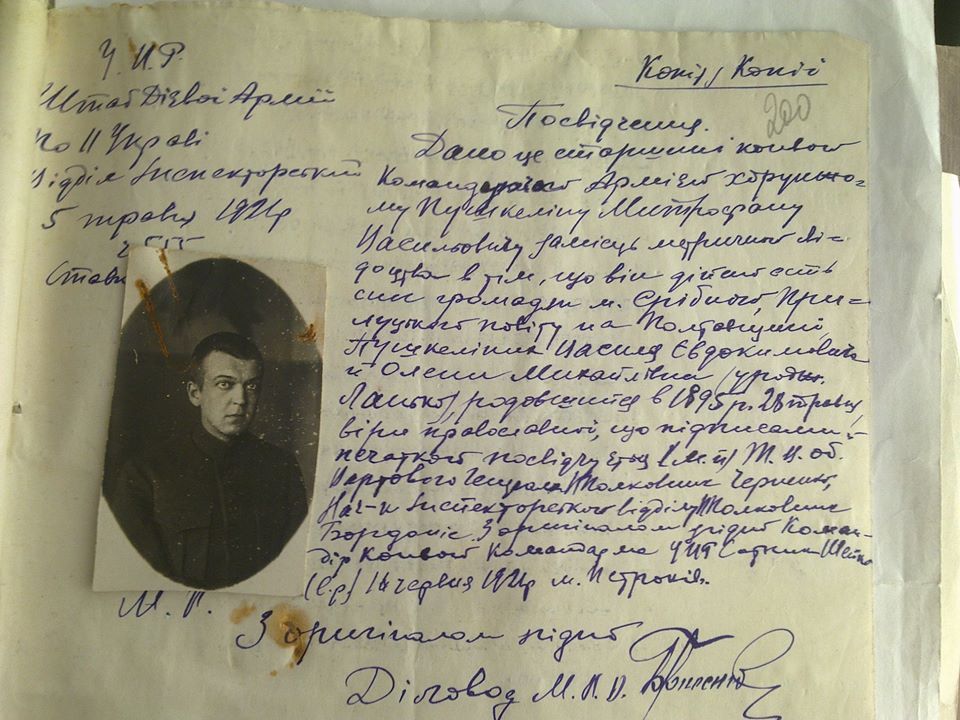 Олексій Астаф’єв (Олелько Остапура-Степовий) — голова шкільної управи Армії УНР, генеральний хорунжий армії Української Держави, повстанський отаман. Народився 25 серпня 1867р. Закінчив 2-й московський кадетський корпус, Миколаївське артилерійське училище і Миколаївську інженерну академію. Згодом викладав в Одеському і Чугуївському піхотних юнкерських та 2-му Київському військовому училищах. Олексій Астаф’єв був активним учасником українського національного життя в російській імперії. Протягом восьми років він грав у театральній трупі Марка Кропивницького, а згодом організував власну трупу. Олексій Астаф’єв (Олелько Остапура) гуртував навколо себе патріотичну молодь Харківщини, був близьким до середовища Миколи Міхновського. У 1917 році полковник Астаф’єв долучився до будівництва української армії. Наприкінці року був призначений начальником відділу військово-навчальних закладів Військового міністерства Української Народної Республіки. Брав участь у боях проти більшовицьких повстанців у Києві. У березні 1918 року очолив Головну шкільну управу Армії УНР, згодом – Армії Української Держави. З серпня 1918 року перебував у резерві Головного штабу, був підвищений у званні до генерального хорунжого. Після зміни влади знову очолив Головну шкільну управу, а в січні 1919 року був призначений аташе в Туреччині. З серпня 1919 року був старшиною для доручень 2-го помічника Військового міністра УНР. Упродовж осені 1919 року займався формуванням Інженерної школи старшин, а в грудні 1919 року виїхав до рідного Чугуєва. Ймовірно, під псевдонімом «Степовий» (який Олексій Астаф’єв носив ще у театральній трупі, а згодом хотів додати до офіційного прізвища) протягом 1920–1923 років на чолі повстанських загонів боровся проти більшовицької влади на Харківщині та загинув у боях з чекістами. На фото: Олексій Астаф'єв (Остапура-Степовий) та командир київського Вільного Козацтва, комендант Києва Михайло Ковенко (в центрі) на параді на Софійській площі. 12 січня 1918р.