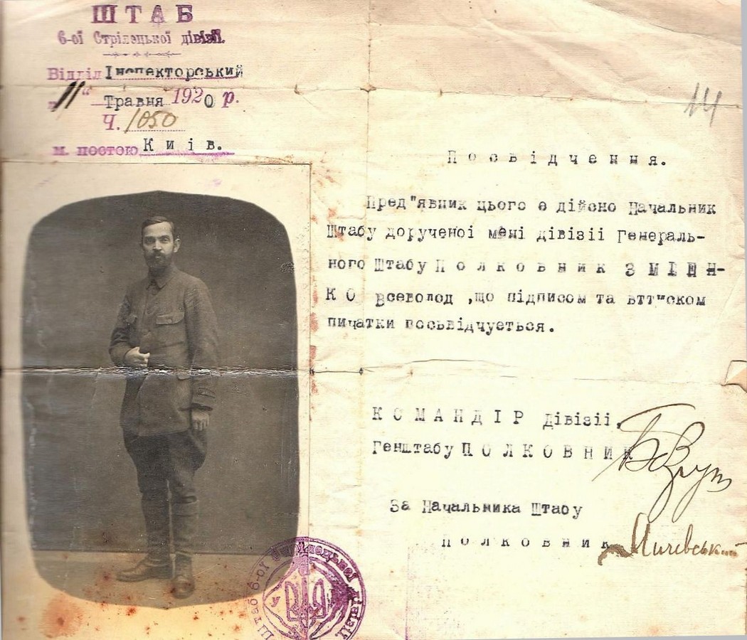 Змієнко Всеволод Юхимович (16.10.1886 – 30.10.1938) – генерал-хорунжий Армії УНР. Українець, православний. Закінчив Київське піхотне юнкерське училище (1907), Миколаївську академію Генерального штабу (1913). Після закінчення академії служив у 59-му піхотному Люблінському полку (Одеса) для здобуття ротного командного цензу. У складі полку вирушив на фронт. У бою 26.08.1914 р. був поранений у груди (за багнетну атаку у цьому бою 10.11.1915 р. був нагорожениний Георгіївською зброєю). Після одужання — молодший ад'ютант штабу 60-ї піхотної дивізії. З 31.08.1915 р. – старший ад'ютант штабу 39-го армійського корпусу. З 14.06.1917 р. – начальник штабу 83-ї піхотної дивізії. Останнє звання у російській армії – підполковник. З 20.12.1917 р. – начальник штабу Одеської гайдамацької дивізії військ Центральної Ради. З 01.03.1918 р. –військовий комендант Одеси. Учасник боїв з більшовиками в Одесі. З 15.03.1918 р. – голова військового відділу Головного комітету Херсонщини, Таврії та Кагеринославщини. З квітня 1918 р. – голова демобілізаційного комітету на Херсонщині. Згодом – помічник: губернського коменданта Херсонщини. З 13.12.1918 р. – начальник: штабу 3-го Херсонського корпусу. Учасник боїв проти російських добровольців (16.12.1918). З 10.02.1919 р. – в. о. командувача Південно-Східної групи Дієвої армії УНР. 3 03.1919 р. – командувач Східного фронту у складі Південно-Східної групи Дієвої армії УНР. 06–07.1919 р. – голова комісії з ліквідації справ Східного фронту. З липня 1919 р. – начальник штабу 10-ї пішої дивізії Січових стрільців Дієвої армії УНР. 01.12.1919 р. був інтернований польською владою у Луцьку. З 08.02.1920 р. – начальник штабу 1-ї (з 21.03.1920 р. – 6-ї Січової) дивізії, що формувалася у фортеці Брест-Литовський з вояків Дієвої армії УНР, інтернованих польською владою на початку грудня 1919 р. 21.041920 р був підвищений до рангу полковника 3 1921 р. – генерал- хорунжий. З березня 1927 р. – начальник 2-го розвідувального відділу Генерального штабу Військового міністерства УНР в екзилі. Помер та похований у Варшаві, на Вольському цвинтарі. 29 липня 2024 року Президент України присвоїв 142-му навчально-тренувальному центру Сил спеціальних операцій Збройних сил України почесне найменування «імені генерал-хорунжого Всеволода Змієнка».
