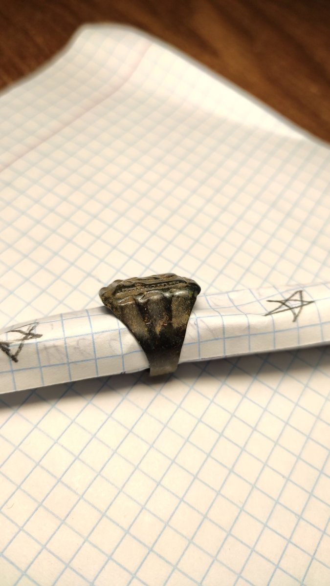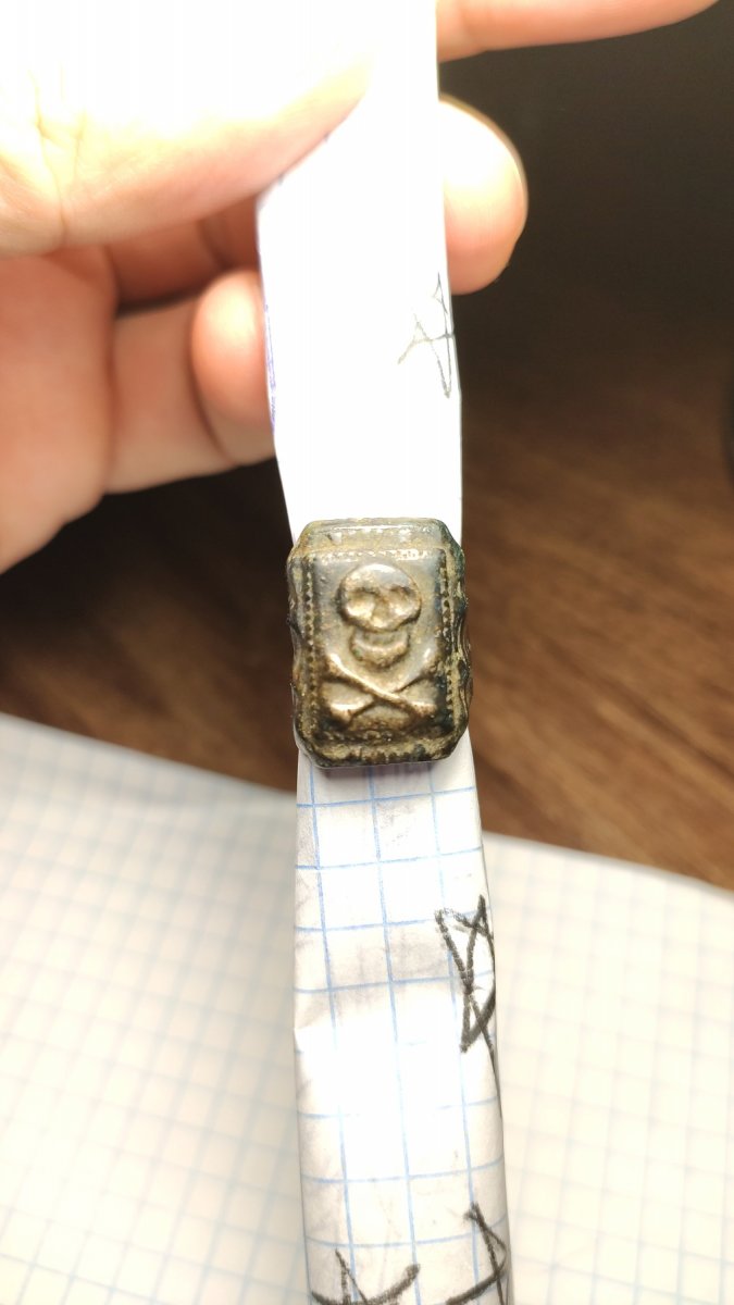 Доброго дня ! Попався такий перстень , матеріал мідь чи латунь, виглядає штампованим , не литий . Попався на німецьких позиціях ПСВ. Підкажіть це перстень штурмовиків , уланів ? Чи можливо це друга світова?