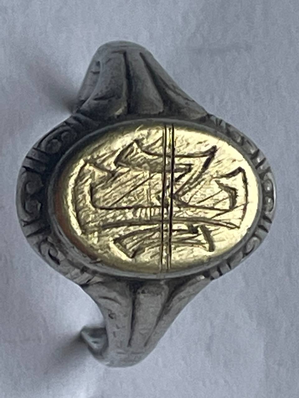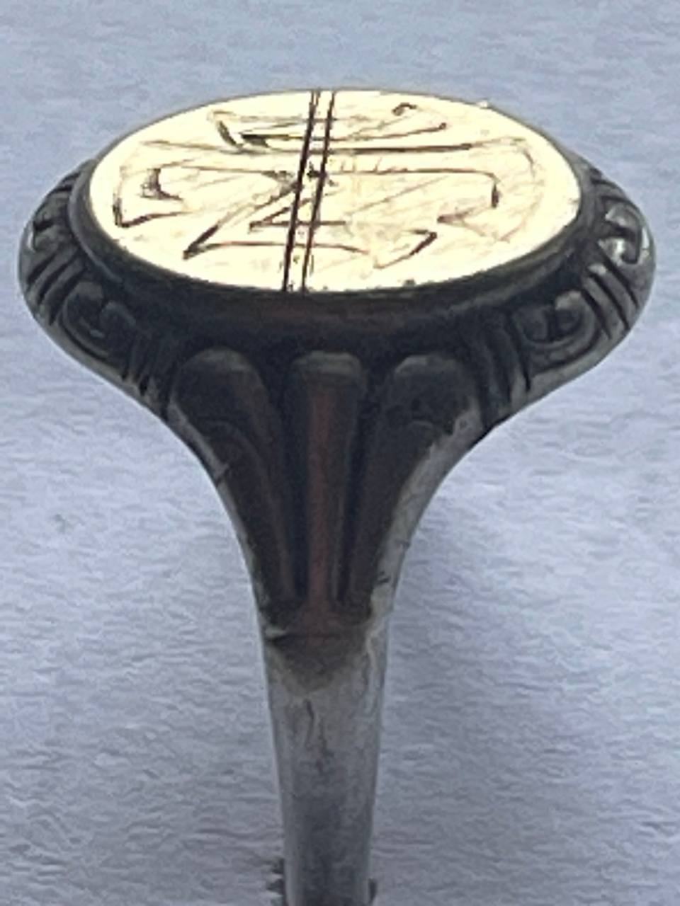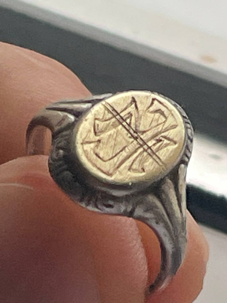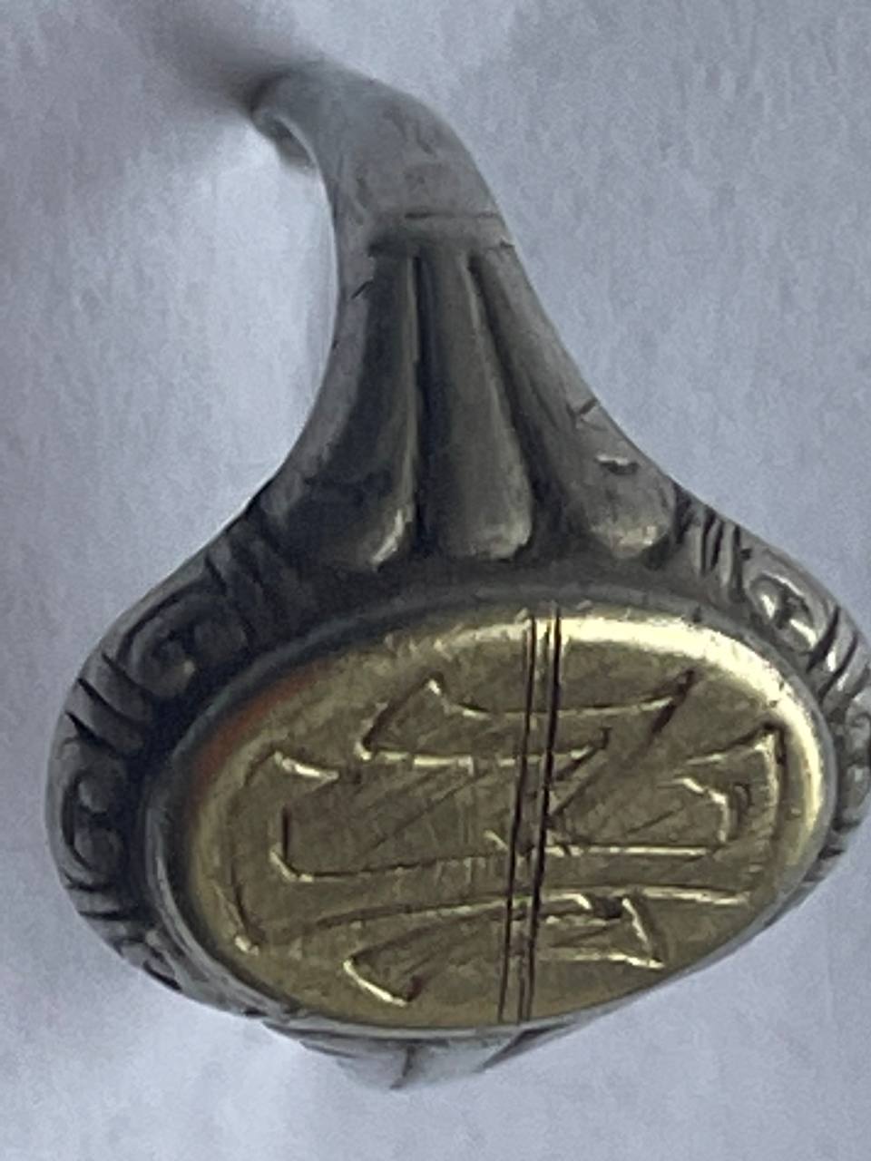 Добрый вечер. Подскажите пожалуйста что за перстень? И каких годов. На перстне Инициалы, серебро, и Щиток либо влит золотом или позолота. Вес около 5 грамм. Заранее спасибо С Ув