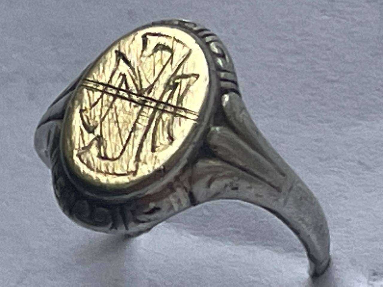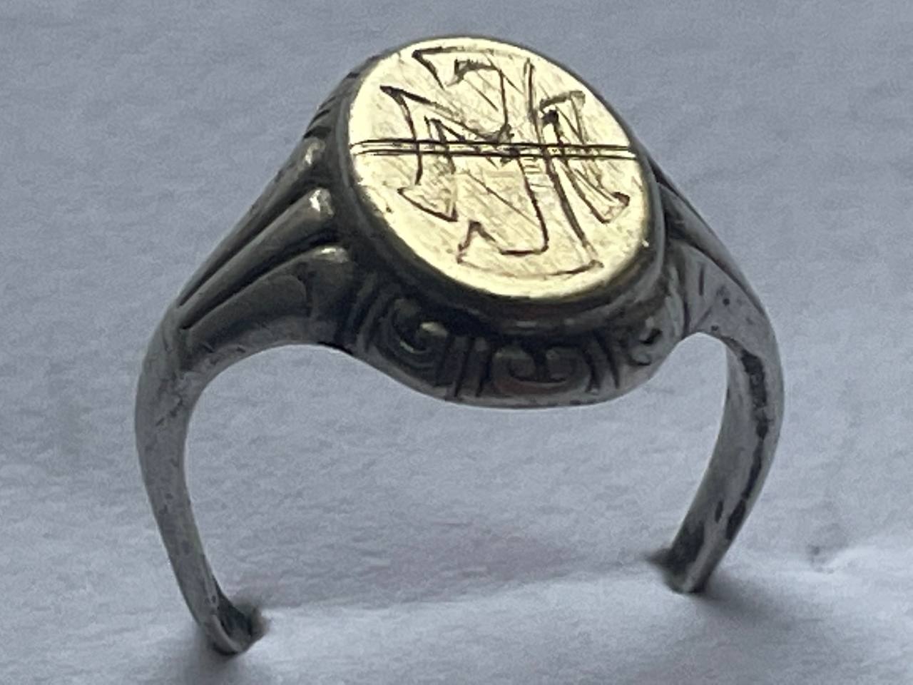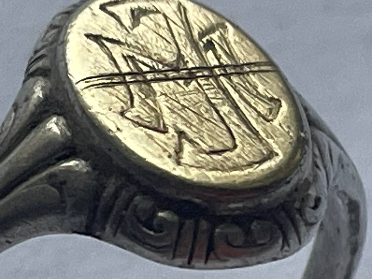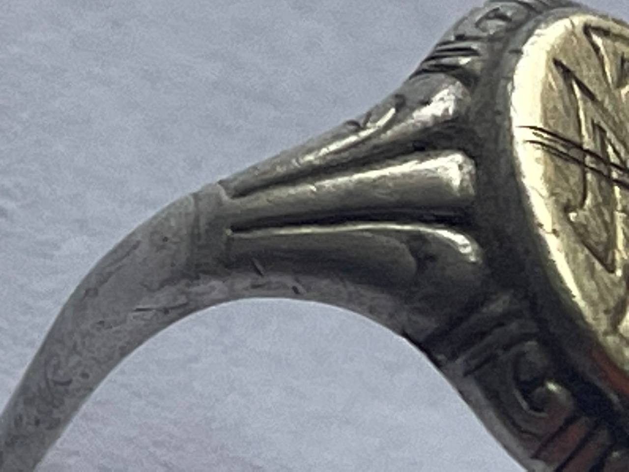 Добрый вечер. Подскажите пожалуйста что за перстень? И каких годов. На перстне Инициалы, серебро, и Щиток либо влит золотом или позолота. Вес около 5 грамм. Заранее спасибо С Ув