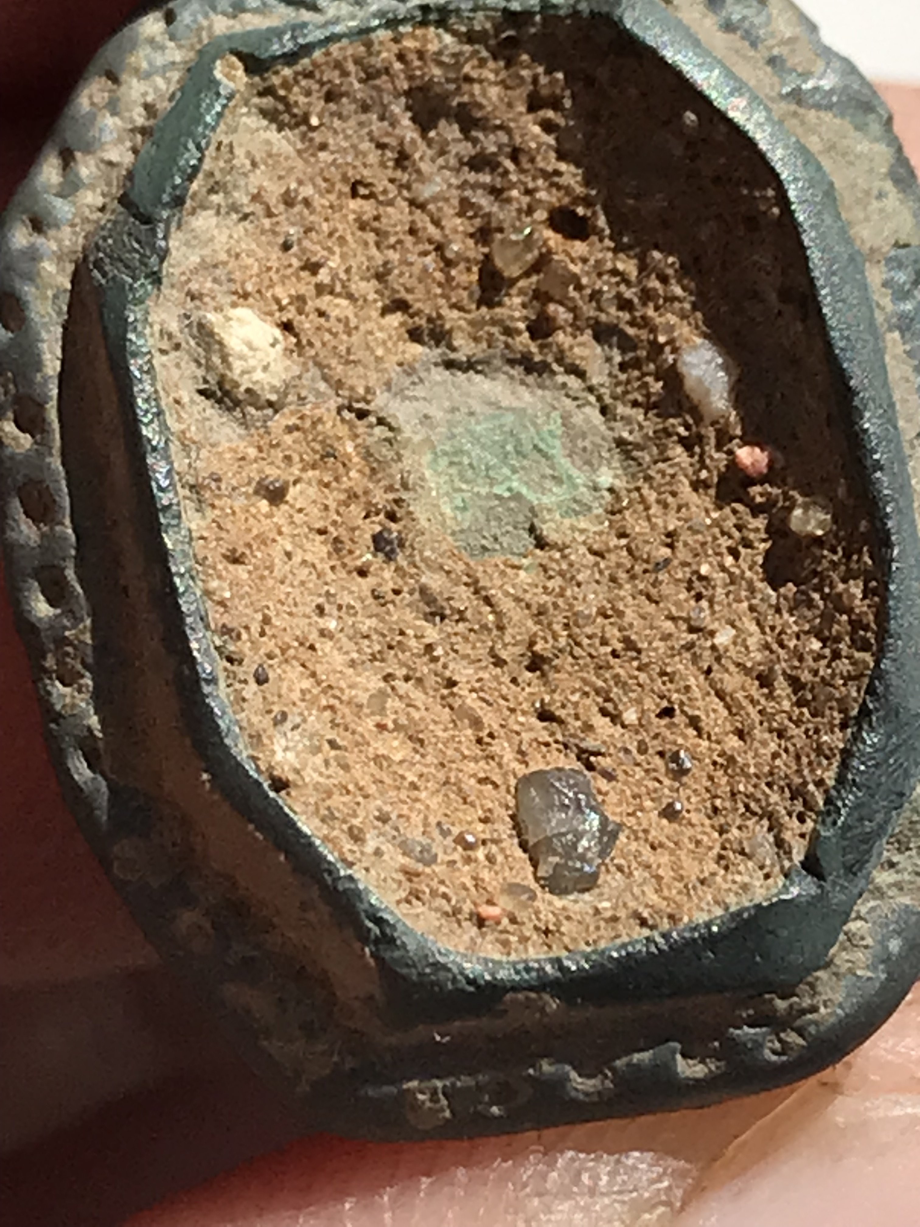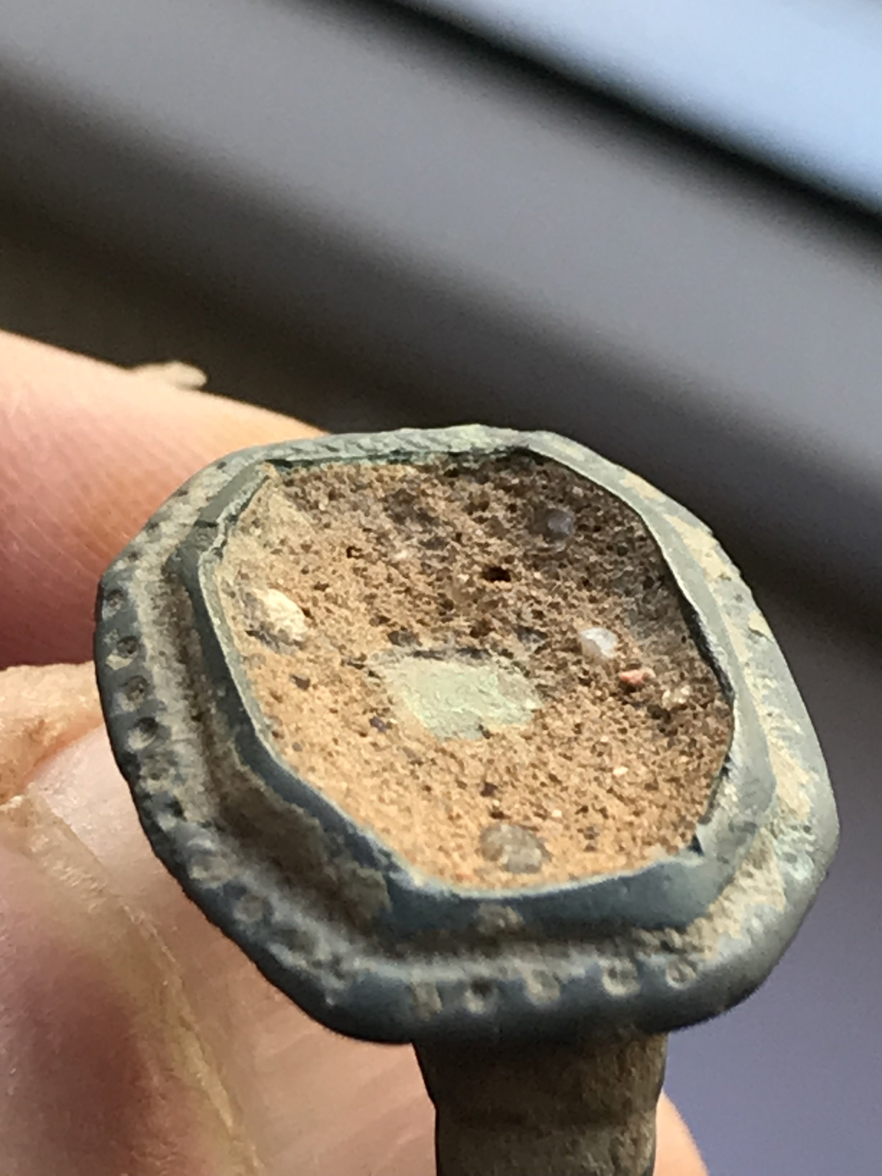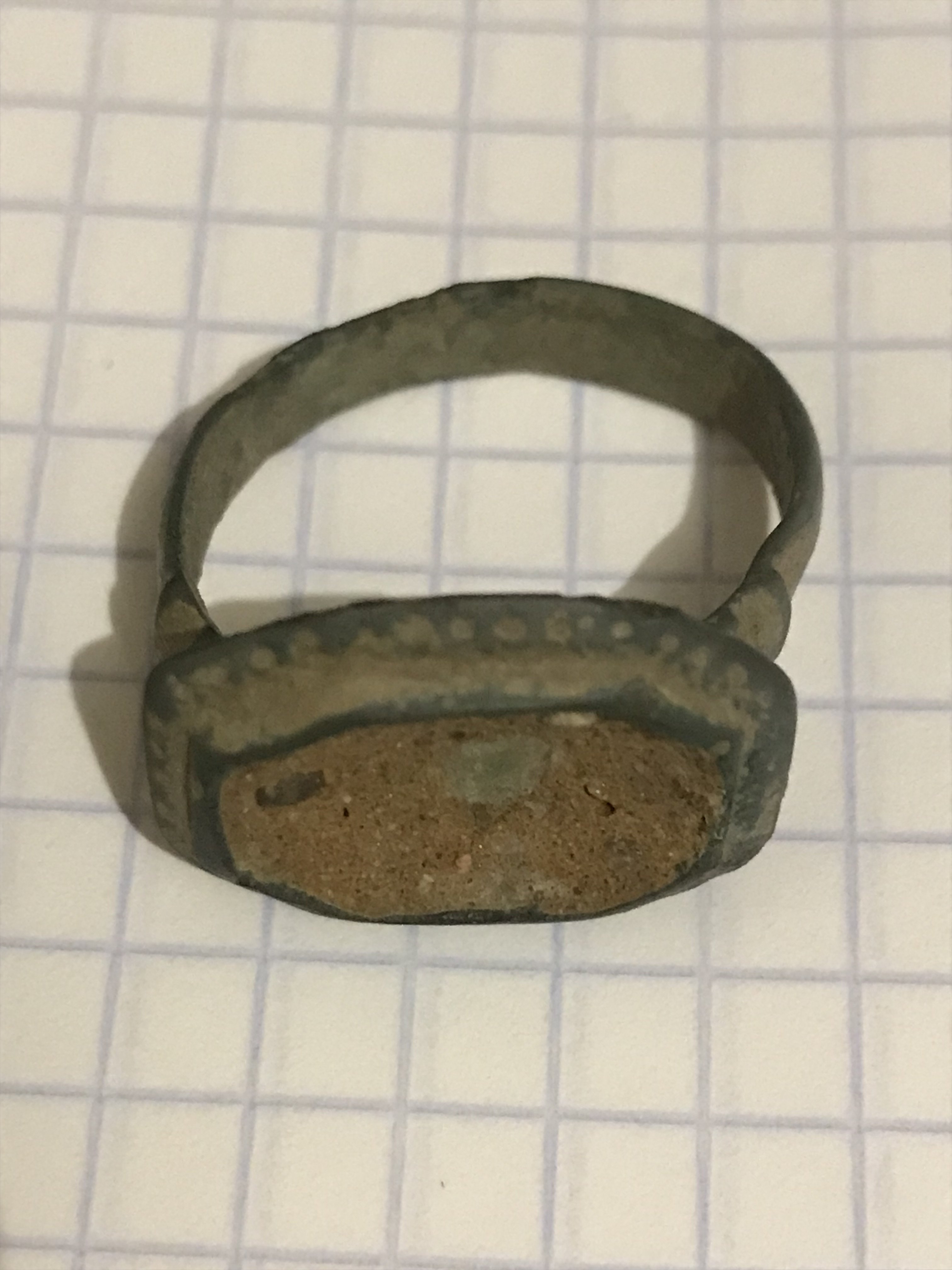 Доброго вечора, підскажіть будь ласка що за перстень і яких років? Знайденний в чорноземі але в місці де камінь якісь залишкі ракушок?