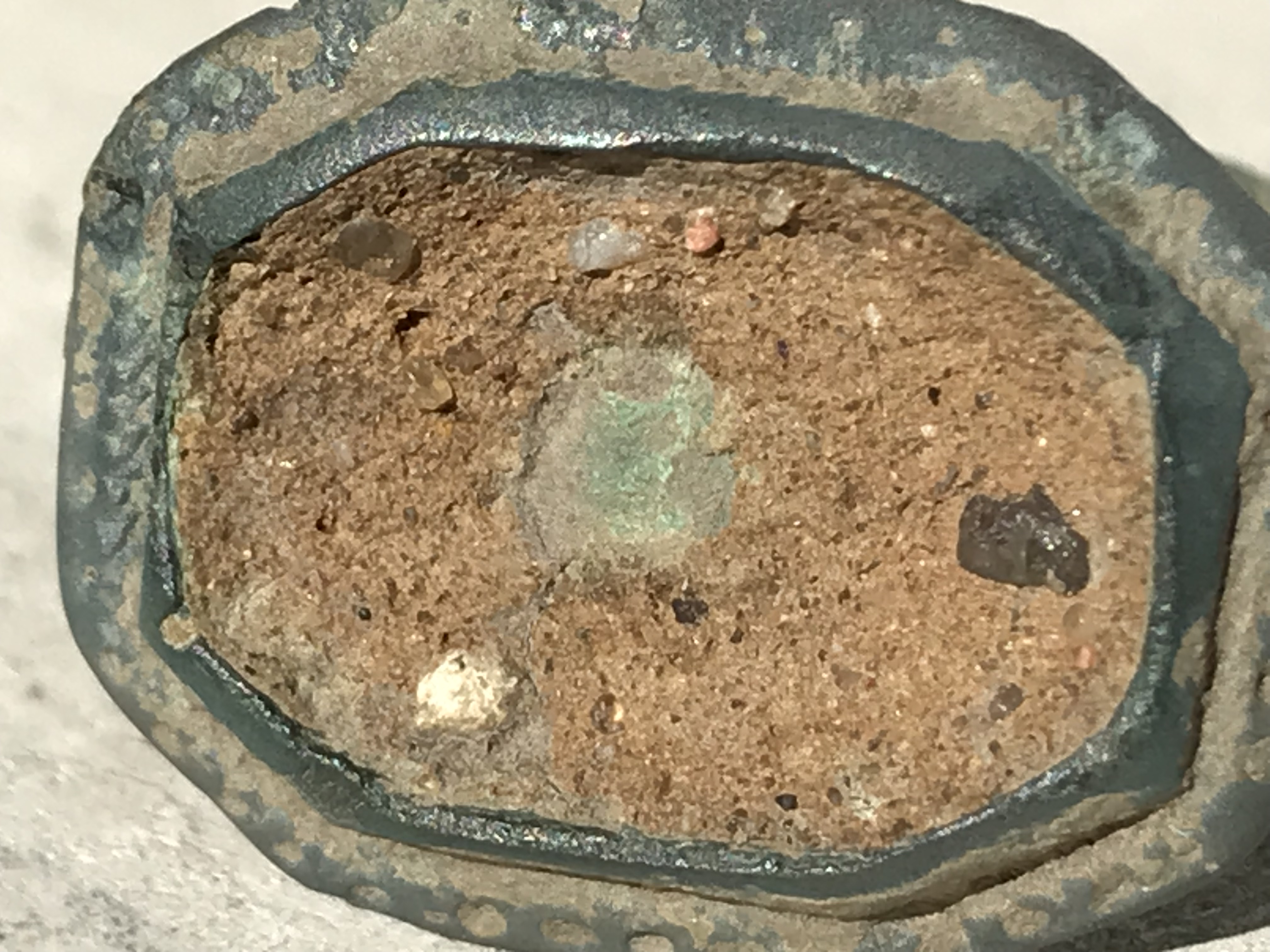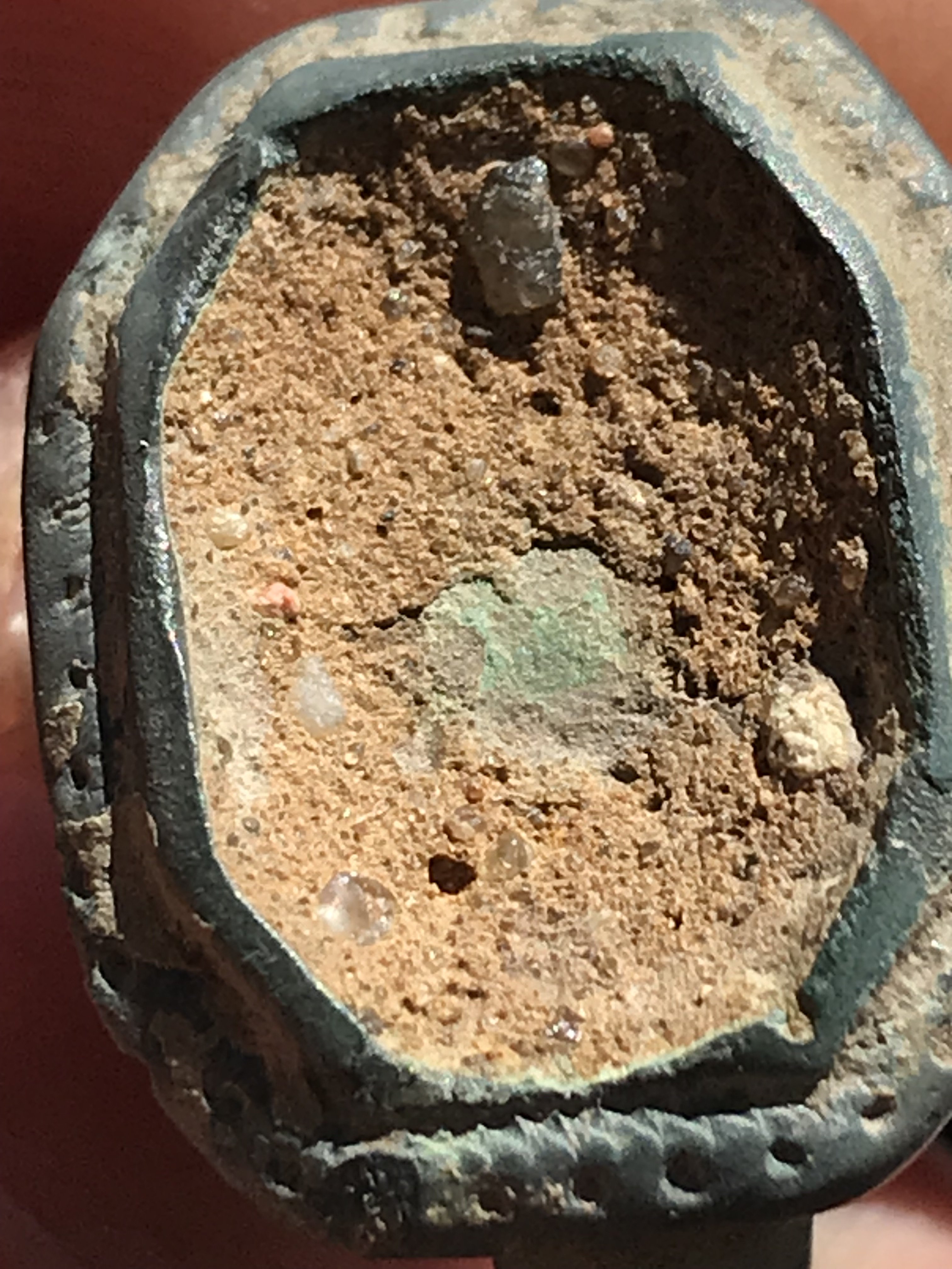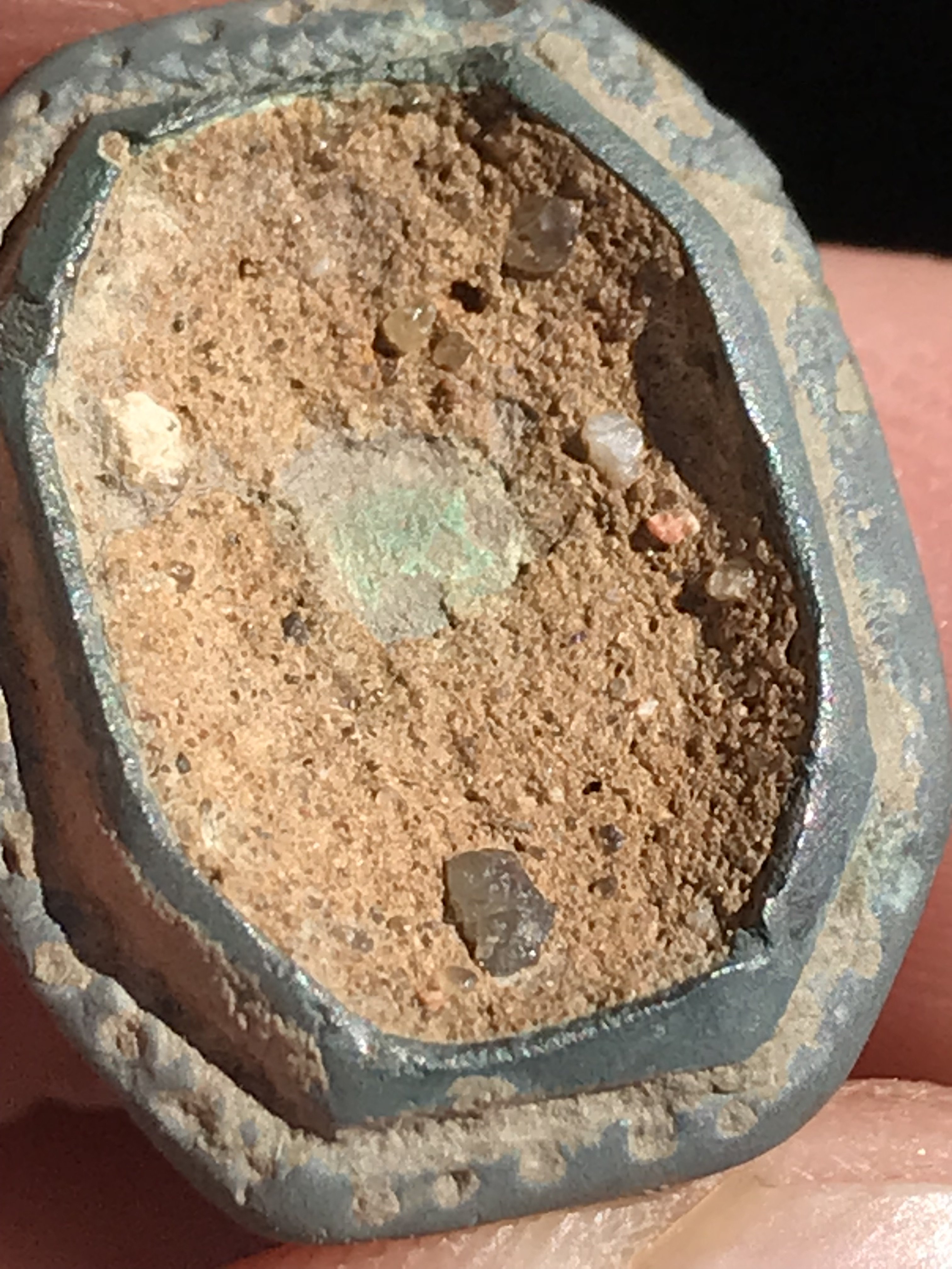 Доброго вечора, підскажіть будь ласка що за перстень і яких років? Знайденний в чорноземі але в місці де камінь якісь залишкі ракушок?