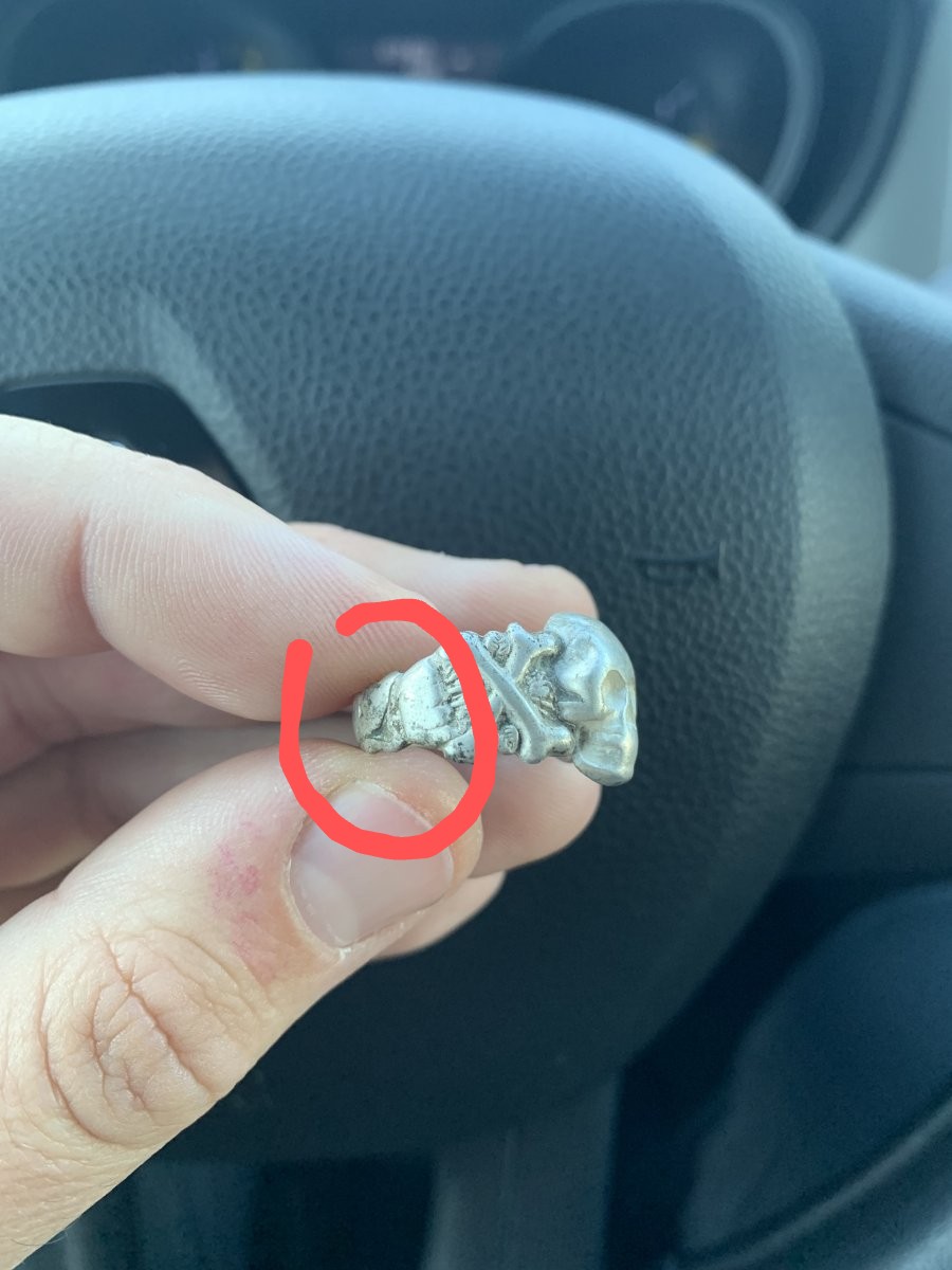 Доброго здоров‘я! Якщо вже зробили неякісні світлини та ще й з частинами тіла (що прямо заборонено Правилами), так хоч дайте якусь уточнюючу інфу: яке клеймо, яка проба, особиста знахідка чи хтось дав на оцінку, знайдений на позиціях ДСВ і т.д., просто помитий чи була інша чистка?