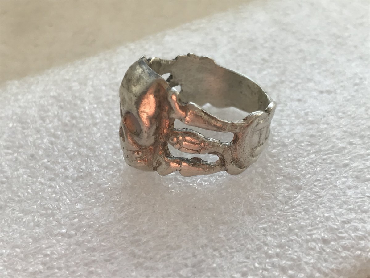 Доброго времени суток. Выставляю на обсуждение серебряный перстень 84 пробы «Адамова голова». Интересует кто мог такие носить, любая информация. Был выкопан, выровняли и спаяли. Спасибо большое за помощь