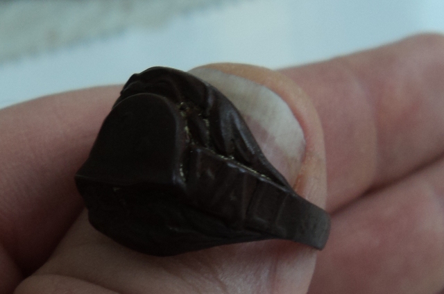 А вот подобный со следами позолоты. Найден в лесу, метрах в трёх от перстня был жетон - потеряшка и ладанка.