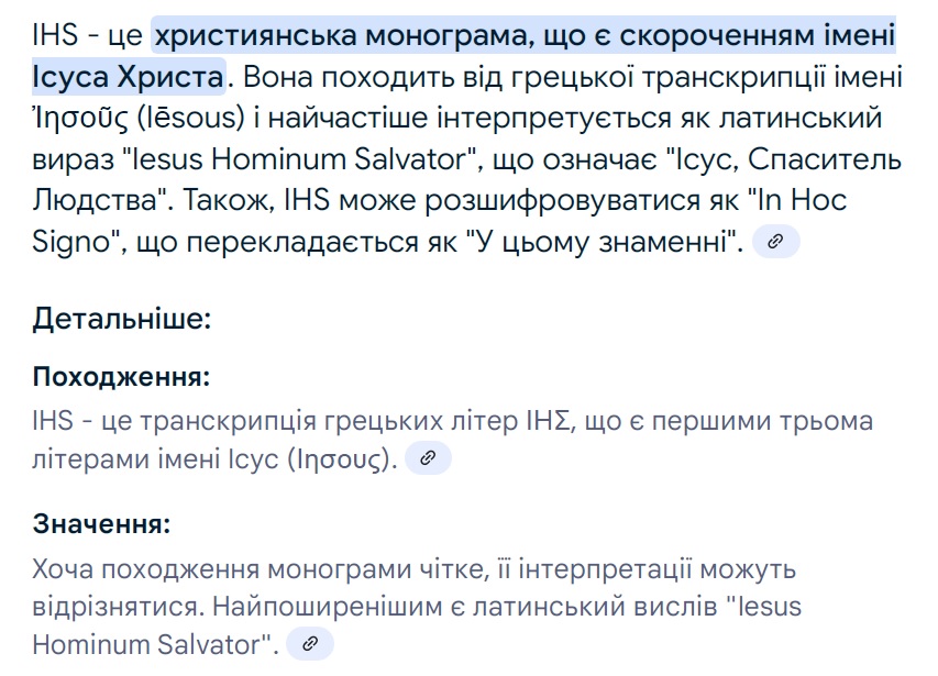 Надпись - IHS. Латынь. Jesus Hominum Salvator - Иисус — Спаситель людей https://www.google.com/search?client=firefox-b-1-e&sca_esv=358a0c356100c0cd&q=ANTIQUE+IHS+ring&udm=2&source=univ&fir=WFK5pzpWcOKqQM%2CI0sYsVVf5V2K-M%2C_%3BeDOPAthGazxFSM%2CXaj3RD88kDME4M%2C_%3B9pM7OEl_-vh_LM%2CirR2V12an-k_kM%2C_%3BIg1PvnLIZ895tM%2CTxwxAepyXwjKZM%2C_%3BENaC48_4h2nbpM%2CXHkOysP3EeSBoM%2C_%3Bc7Ot2npHTlrrdM%2CTRGvO15w7M1RlM%2C_%3BR6AK4BL94wS9uM%2ClXvTHoDOXT2alM%2C_%3BAprnKeQC2b_ZDM%2ClkjsnvDKy6NAvM%2C_%3BoxCgz5kCfhHlzM%2C5lEykx_1xzkNDM%2C_%3BO_pgNmAjsASK6M%2C7WMeQCnlioVRQM%2C_%3B5QOkzyHFNIJViM%2CEzC2dhfj_whMrM%2C_%3BgsysVzbNC0cSEM%2CR_4aBxU1DwNGzM%2C_&usg=AI4_-kQMmJoR3DzRmoIS8NDzIAQgRzZFxw&sa=X&ved=2ahUKEwjm6amIi6iOAxXHKlkFHUaJNXwQ7Al6BAhkEAU&biw=1366&bih=643&dpr=1