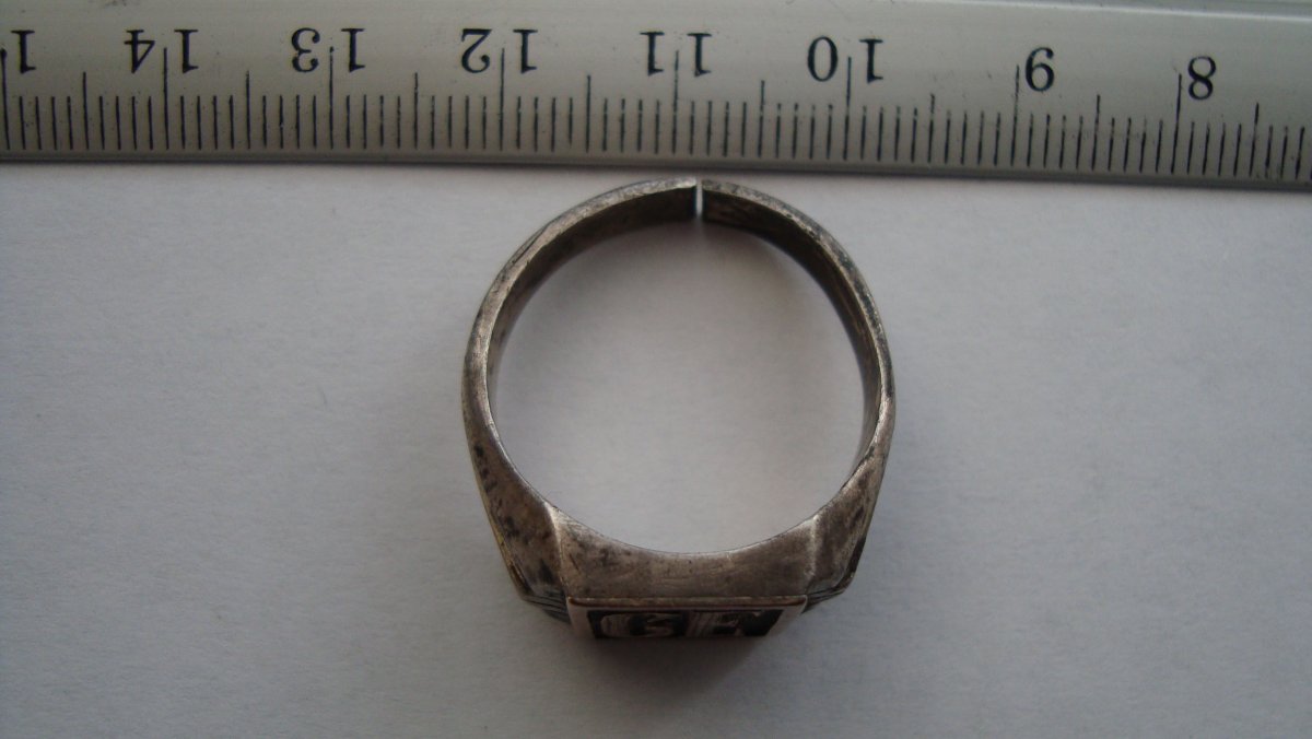 Вот такой девайс. Найден на позициях, серебро, рамка и литеры (подозреваю) золото. Интересует цена.