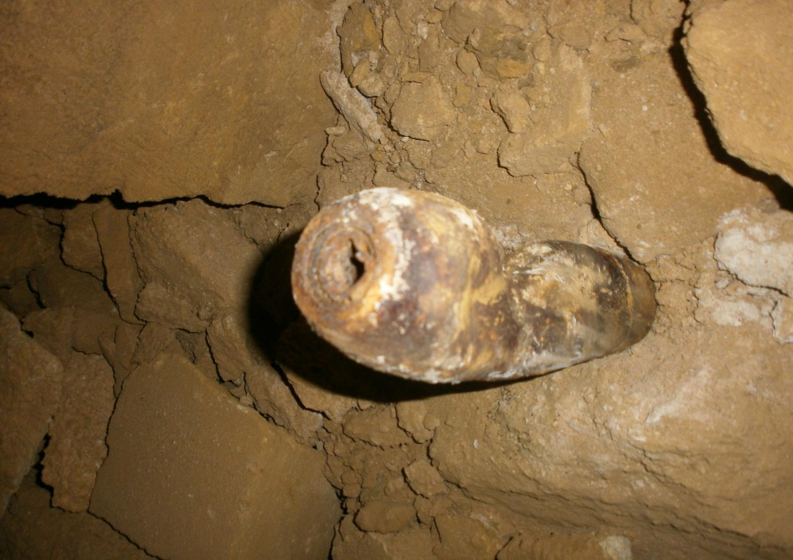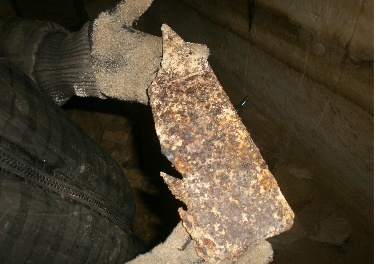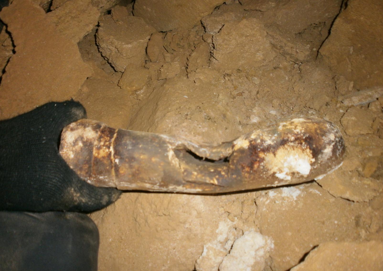 Нашли полностью сгнившую ручку от румынского котелка под завалом, пару гильз и обойму маузера и монетку 1946года 3 копейки, и 2 пуговки немецкие вроде бы, вот такой шмурдяк в наших катакомбах)