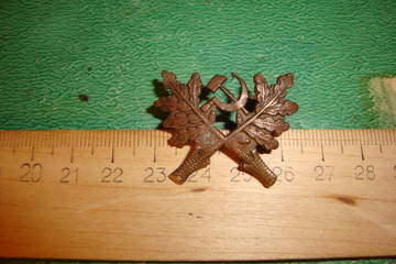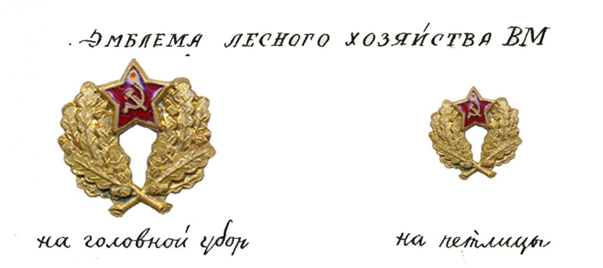 Доброго! Имхо, судя по размерам - все-таки петличный знак Гослесохраны, на 50-е годы. Эмблемы к головному убору и к нарукавным знакам больше по размеру. А вот обр. 1941 года (фото отсюда http://vedsimvol.mybb.ru/viewtopic.php?id=5329) Приказ по Наркомлесу СССР №99/з от 21 января 1941 г. «Об утверждении «Положения о форменном обмундировании работников лесной охраны Наркомлеса СССР и Наркомлесов Союзных республик» Головной знак в виде двух перекрещенных дубовых веток, серебристого цвета, в верхних концах помещается изображение серпа и молота желтого цвета. Вообще, к сожалению, информации по довоенному обмундированию Наркомлеса, Главлесохраны/Гослесохраны в открытом доступе в сети практически нет. С уважением,