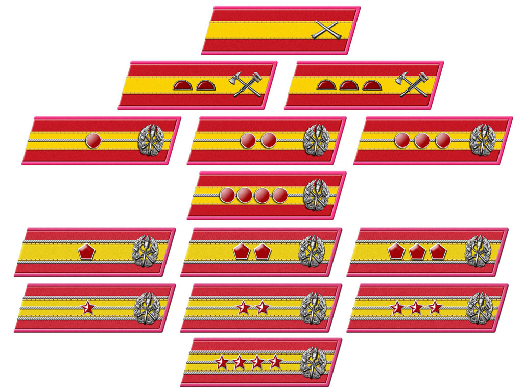 Начальникам мест заключения нашиваются на темно-синие петлицы без кантов - по 3 красных щитка.