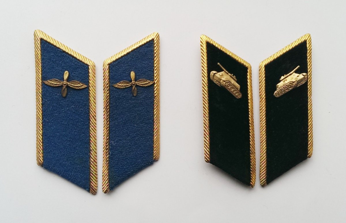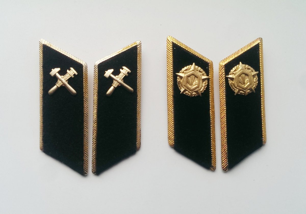 11.Петлицы к парадно -выходным мундирам . Слева -для офицеров службы ГСМ. Таже носились в Военной Академии тыла и транспорта и в Ульяновском Военно-техническом училище. Справа -для химслужбы после 1971 .