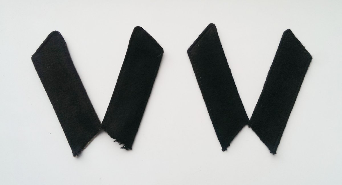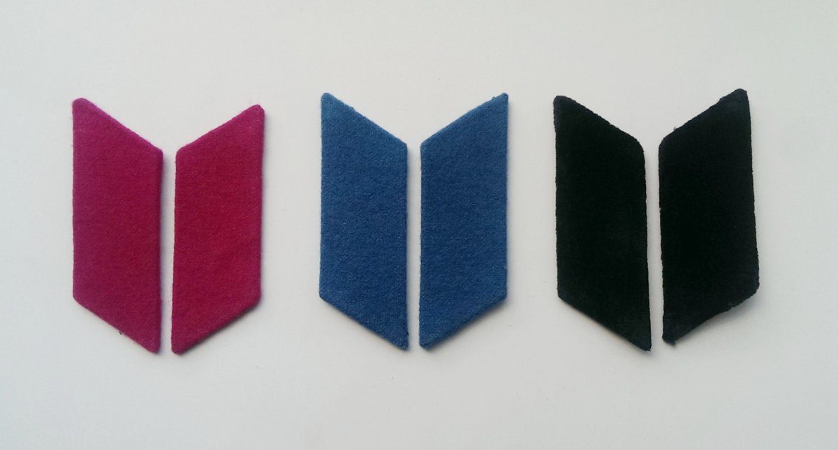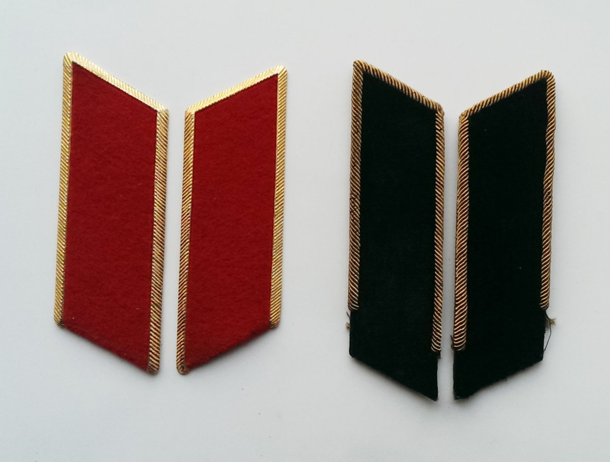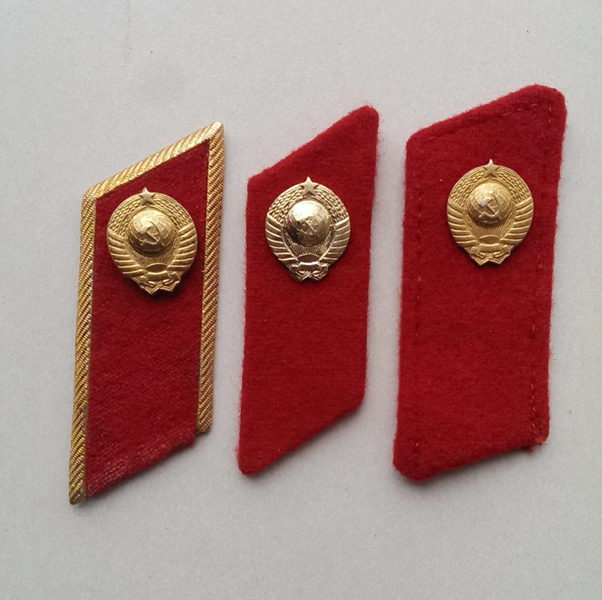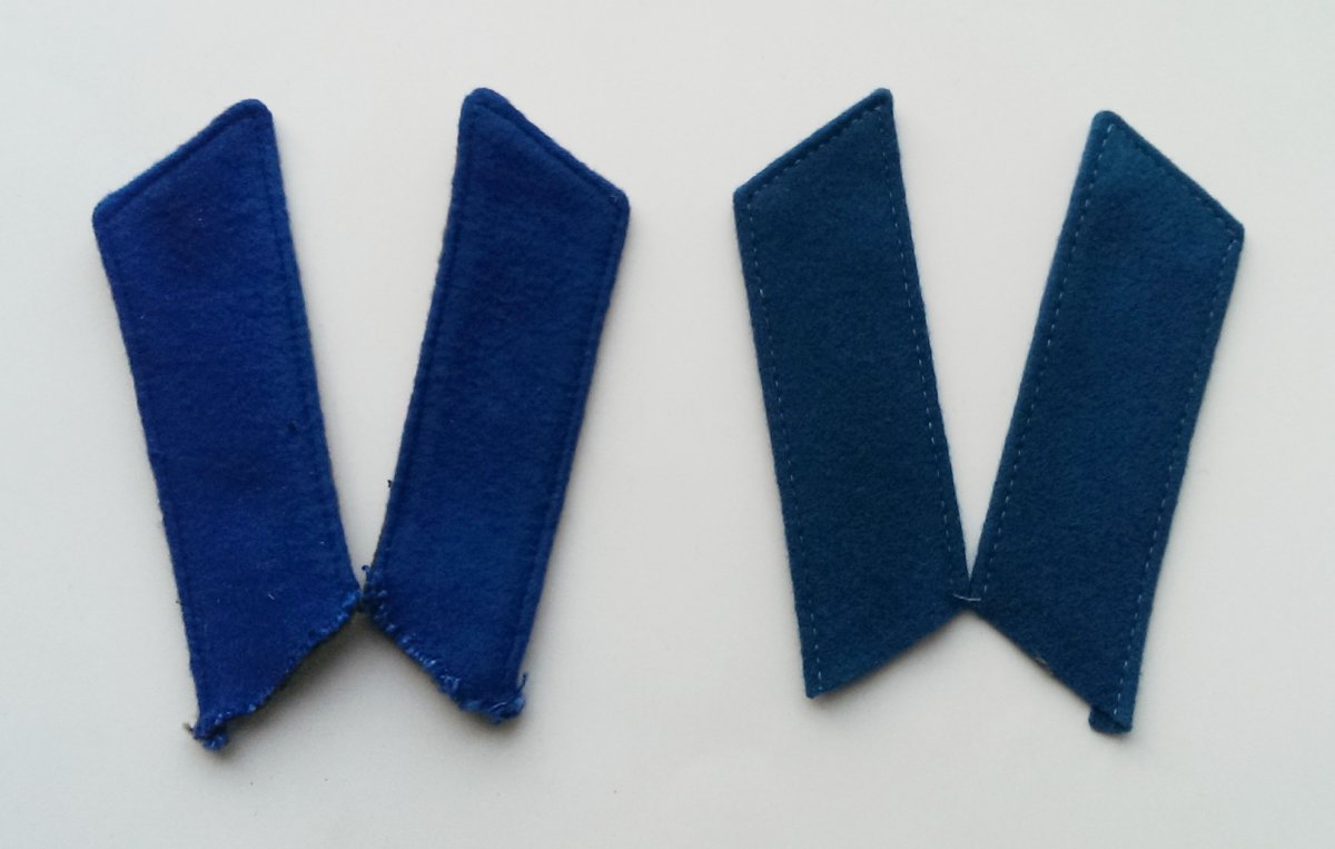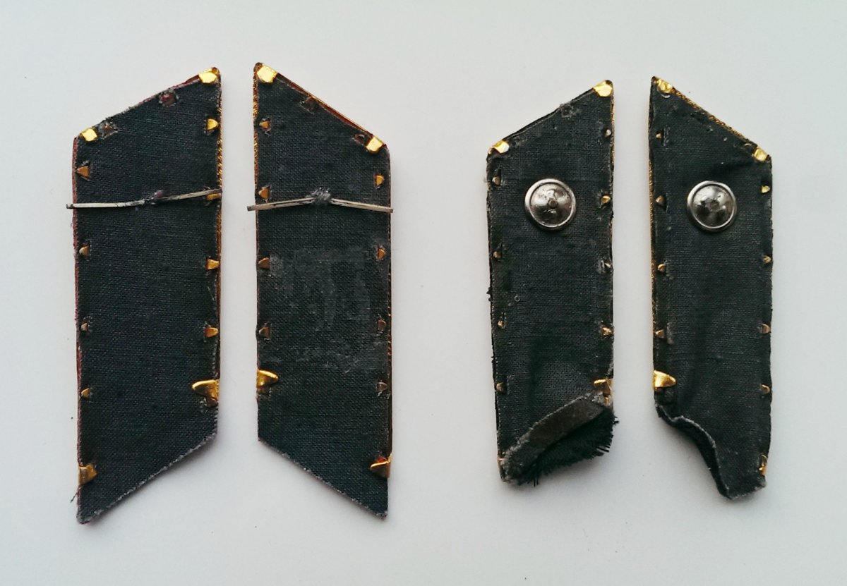 5.Петлицы шинельные для парадов Москве . Слева -на метоснове. Справа- с обшивкой канителью по бортику.