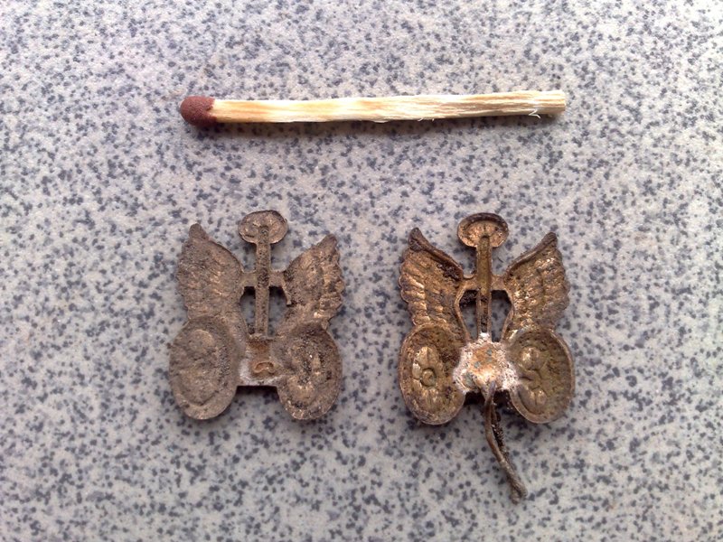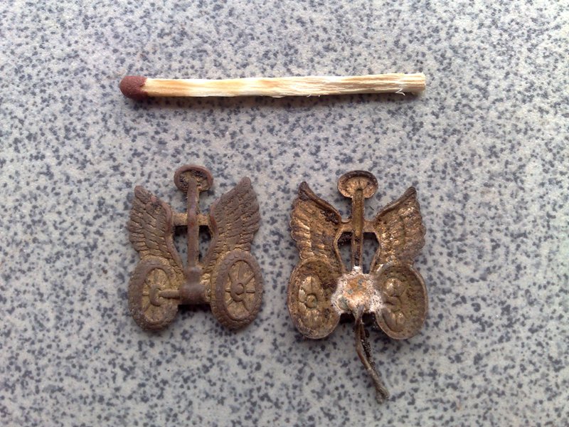 Скорее всего петлицы водитель на войну, я служил в автобате у нас были из люминия, а полевые на ХБ были из металла покрытые защитной краской