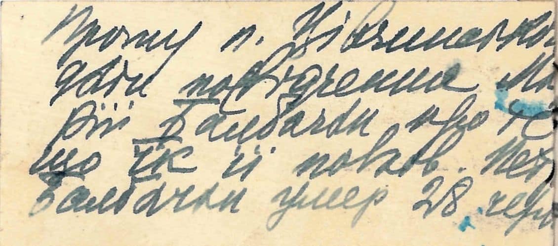 Записка Голови Ради Народних Міністрів УНР А. Лівицького про видачу посвідчення для М. Болбочан про смерть її чоловіка П. Болбочана. 28 червня 1919р.