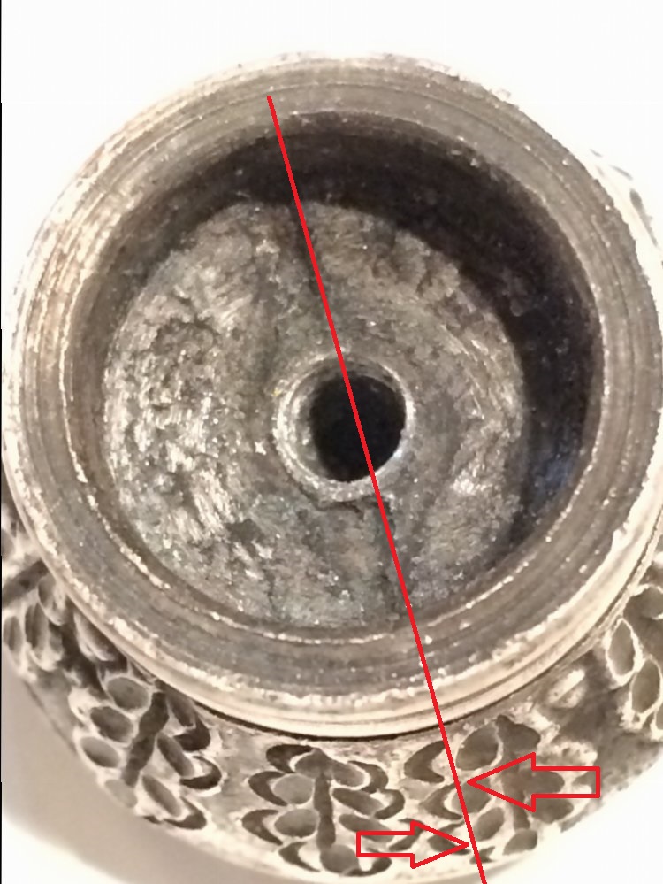 То есть, это дефект литья производителя? И бракованную деталь установили на кортик? Не думаю, что это так. Нормальных, не бракованных запчастей к кинжалам и кортикам оставалось в избытке даже на конец войны. Стоило ли возится с одним бракованным навершием, не проще было взять и установить нормалььное? Тем более, что приёмку по качеству на фабриках по производству ХО, никто не отменял.