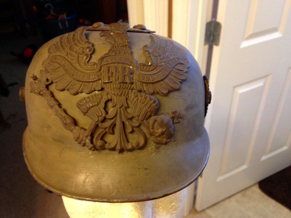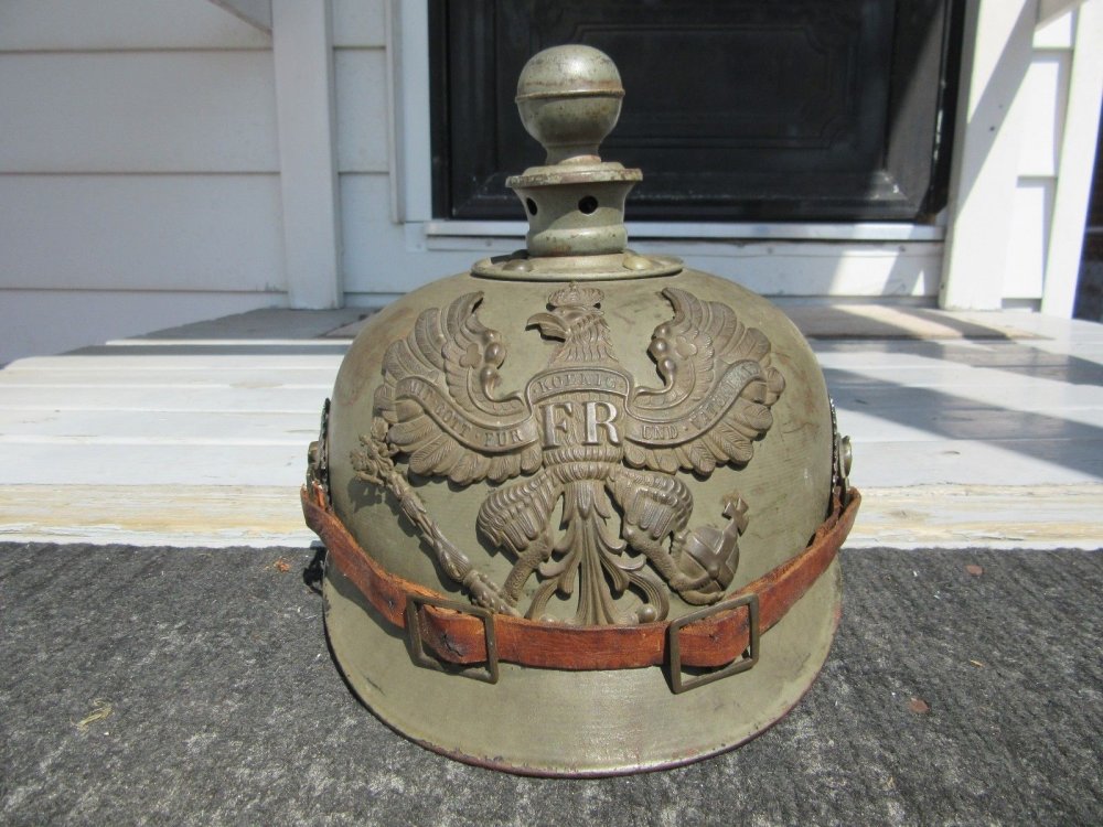 Да с самим шлемом вопросов нет, а вот "птица" уж совсем вычурная. Вот вопрос возникает сразу - лента времен войны, а вензеля на гренадерском орле подстать ранних выпусков до 1895 годов. Такое возможно?