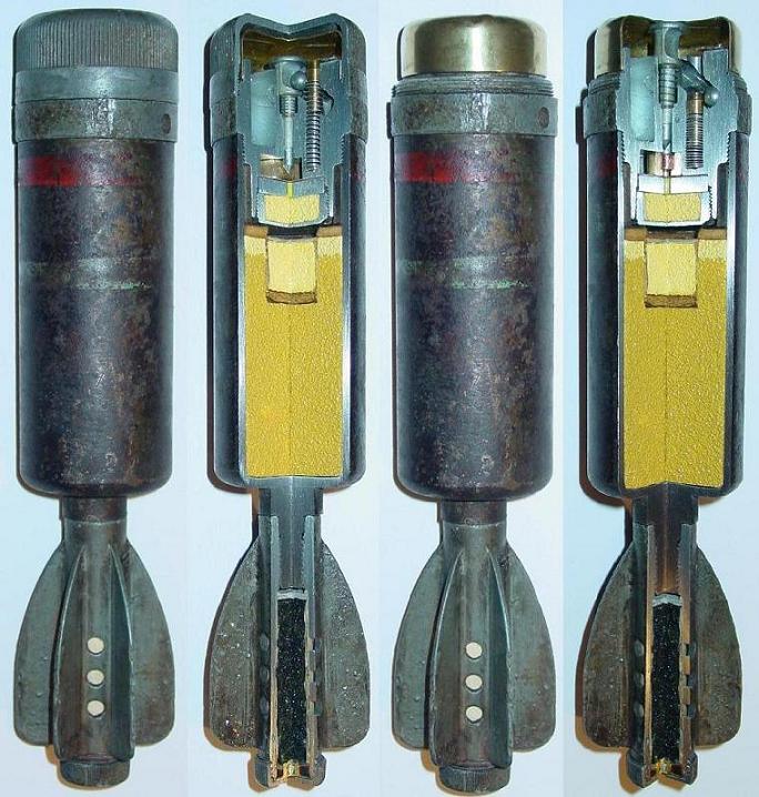 50,8-мм - 2-дюймовая. Осколочная. Взрыватель не взведен. (т.е. мина не отстреливалась ранее). Требует осторожного обращения.
