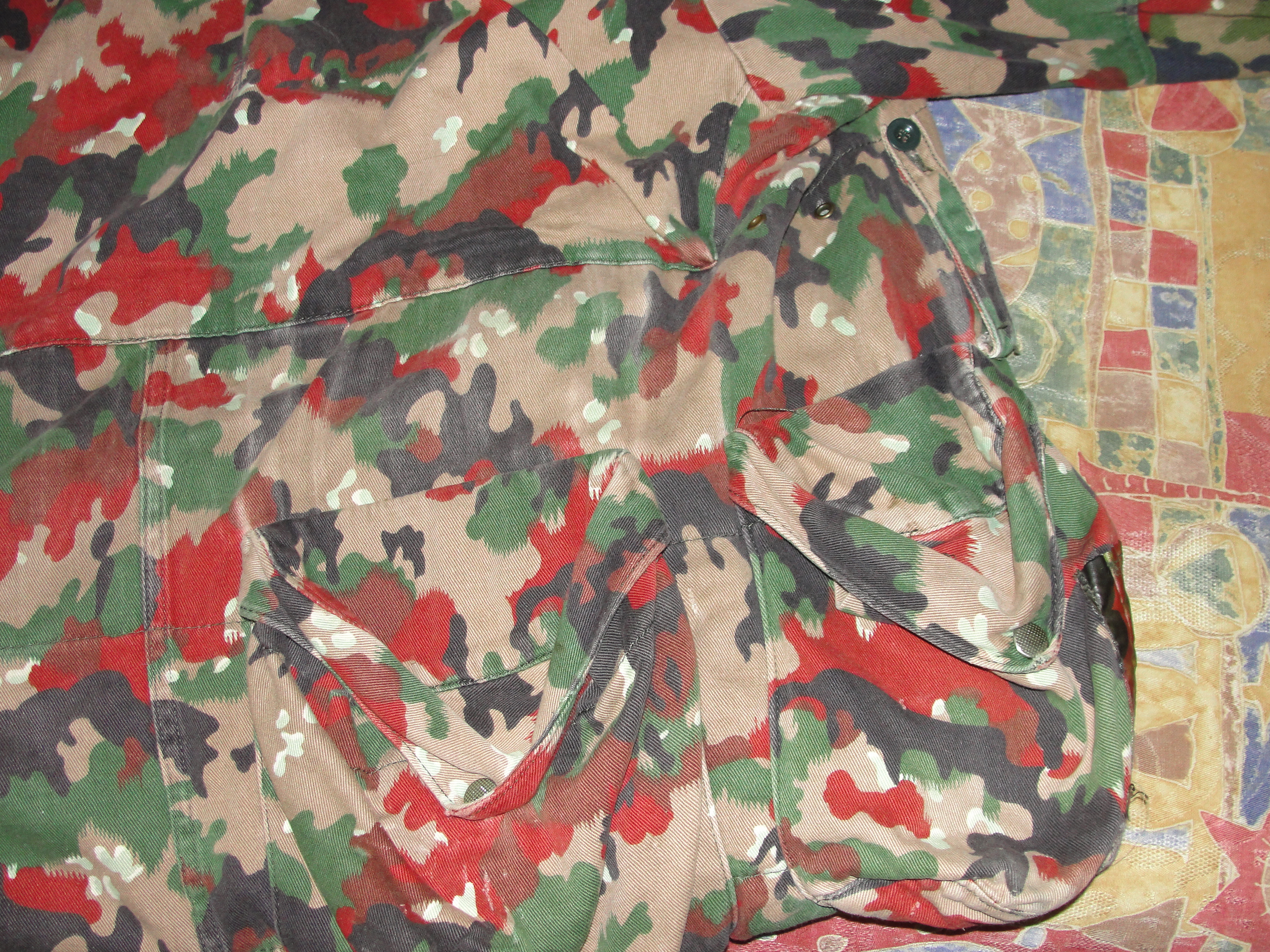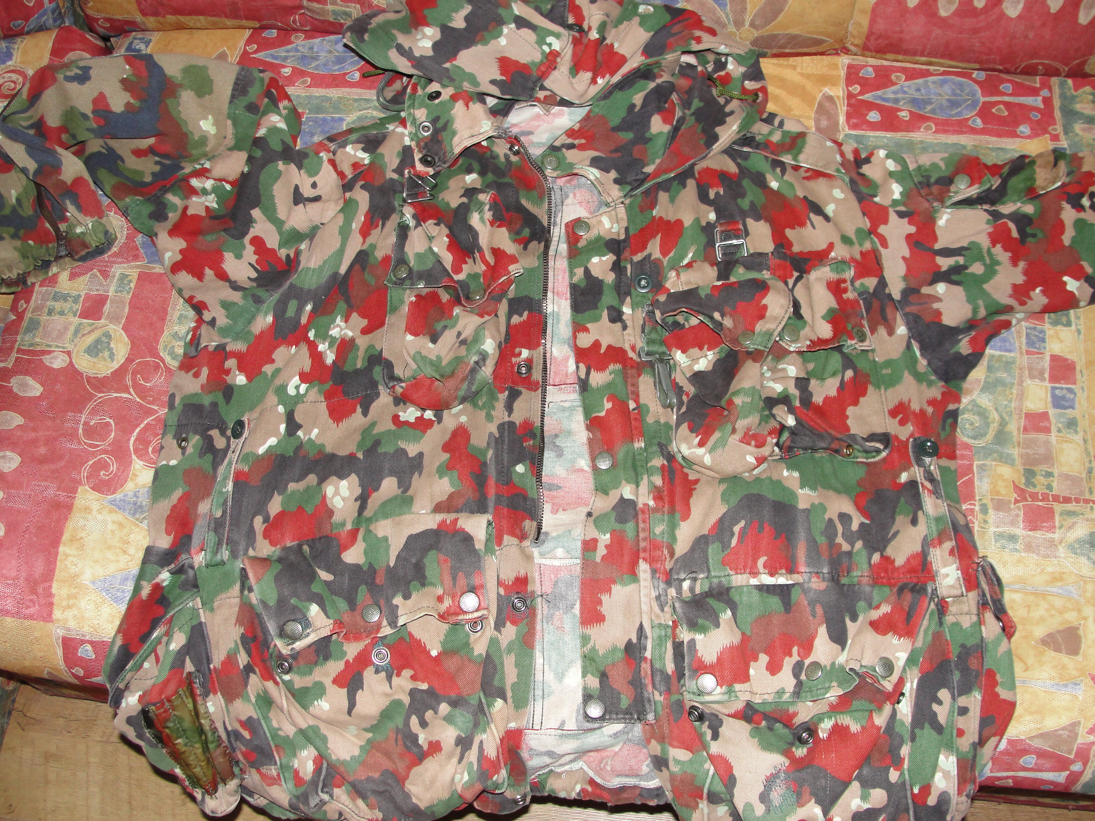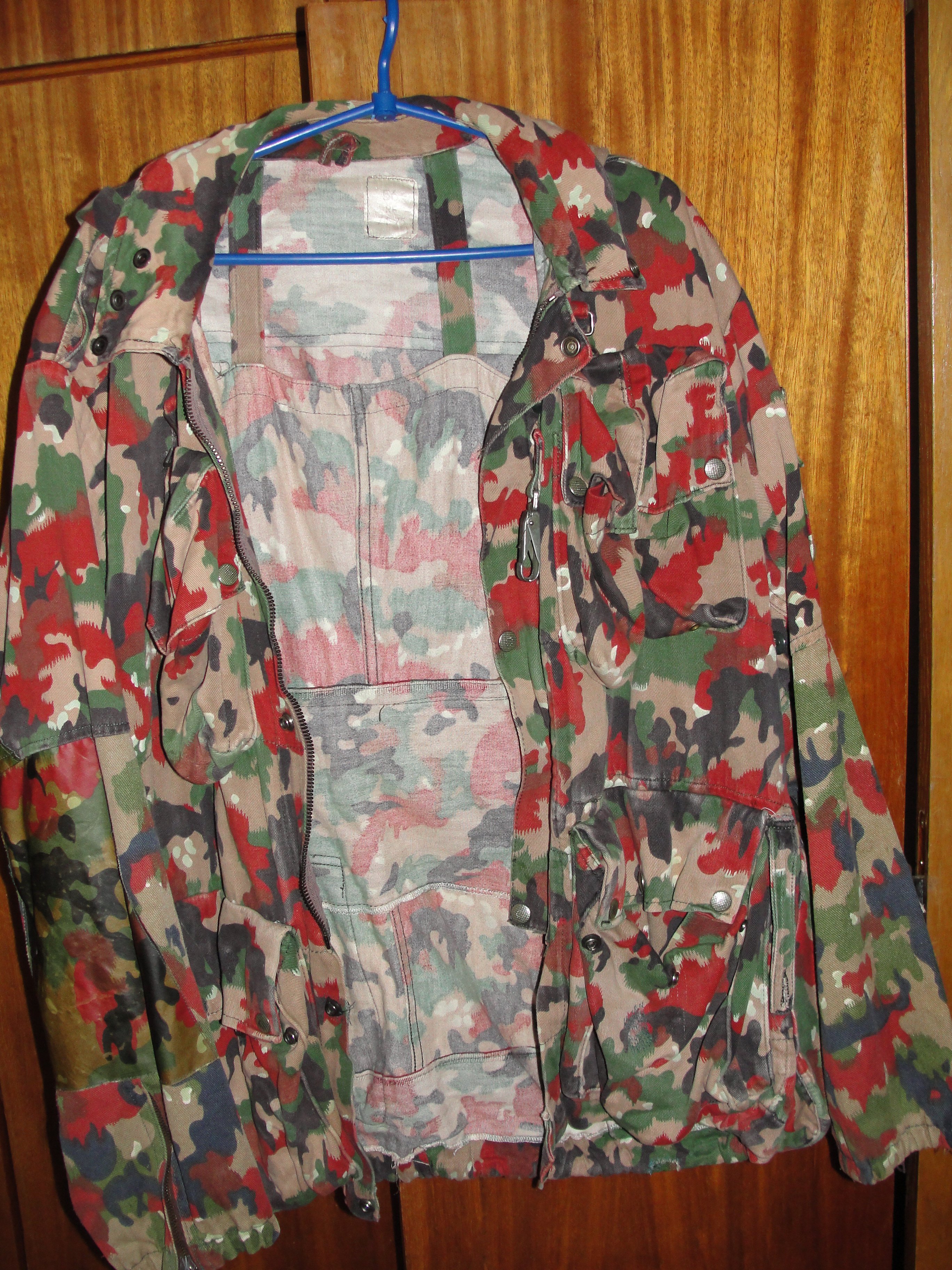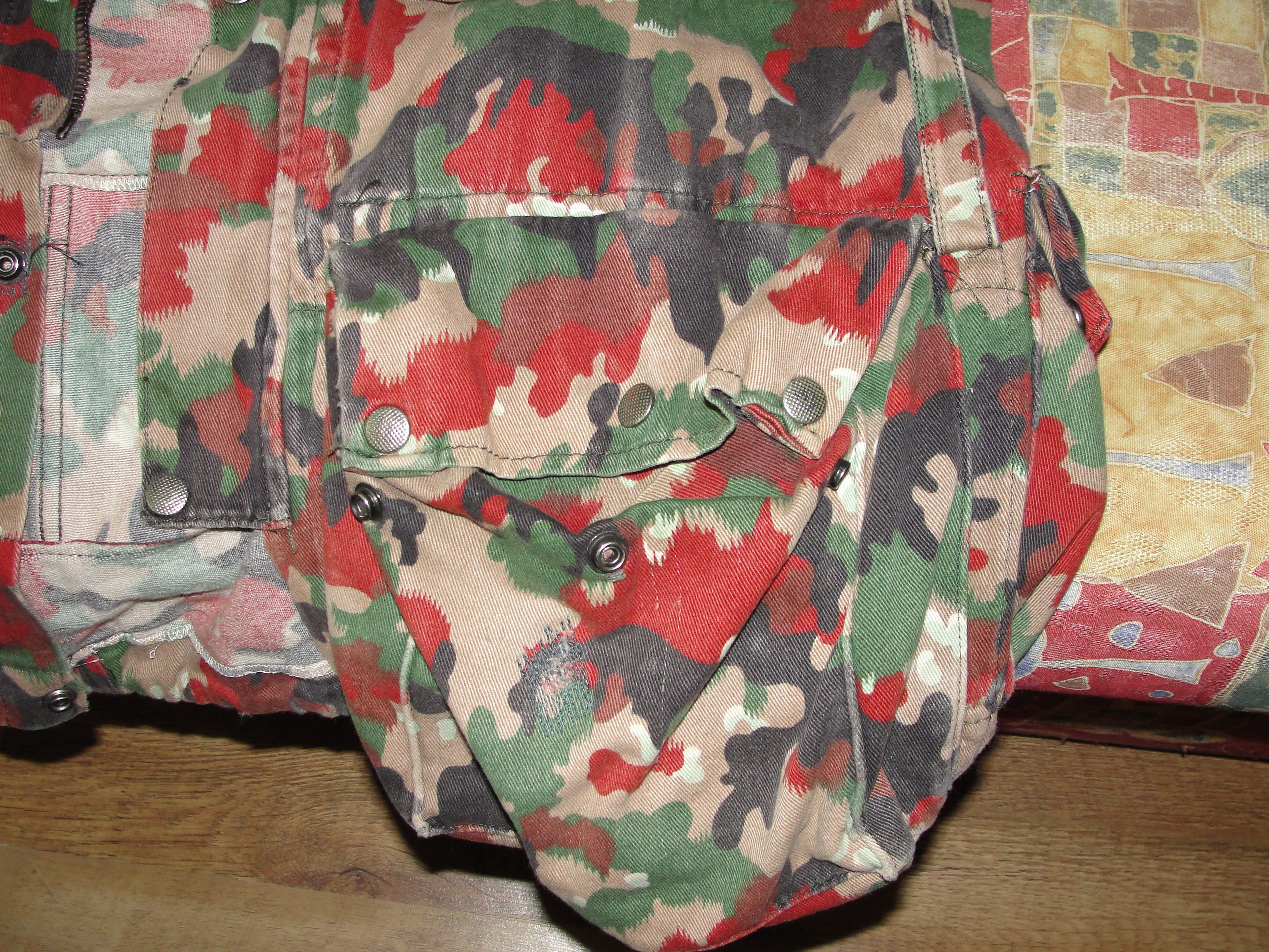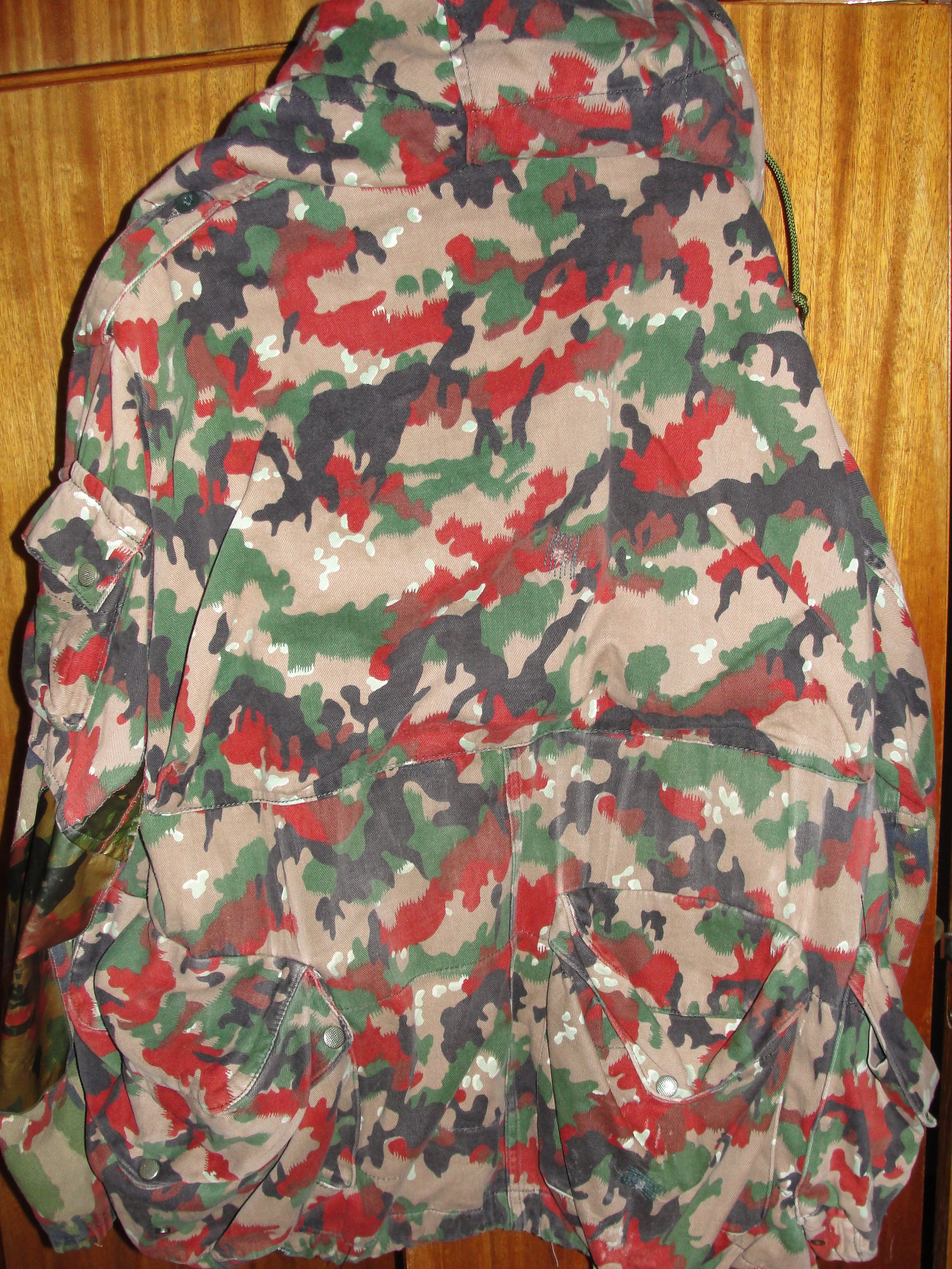 Доброго дня Камуфляж Alpenflage, також відомий як "Альпійський прапор", був розроблений для швейцарської армії і використовувався з 1950-х по 1990-і роки. Цей камуфляж характеризується яскравим забарвленням, що нагадує опале листя, що робить його ефективним для маскування в умовах гірської місцевості та весняно-осіннього періоду. З повагою