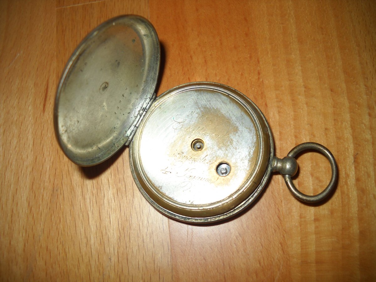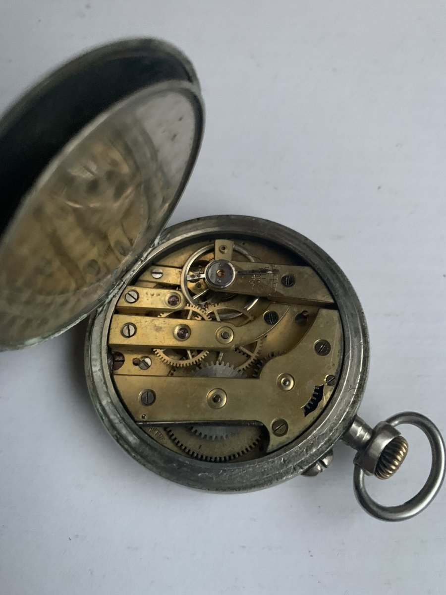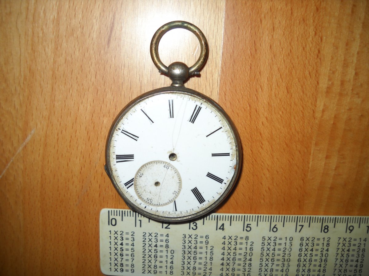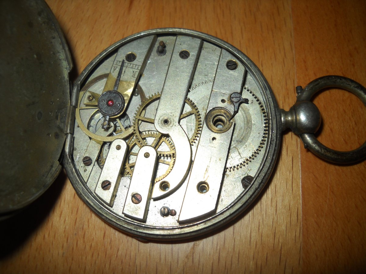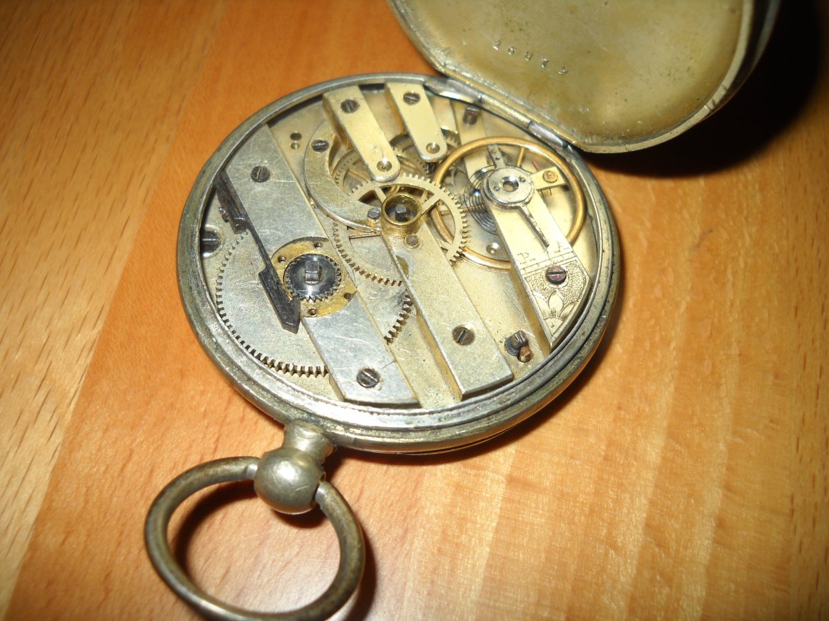 часы №1 .неизвестный шедевр на нормальном анкерном механизме. Перевод стрелок через кнопку, корпус посеребренный...там на крышке клеймо- нужно крупнее и на последнем фото на мехе есть надпись...возможно они что-то прояснят...