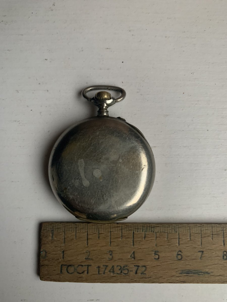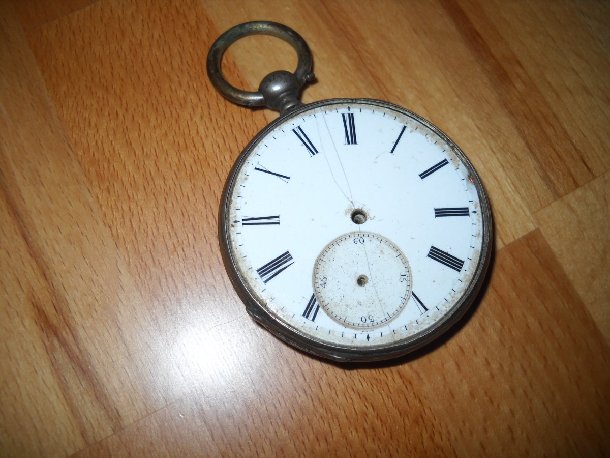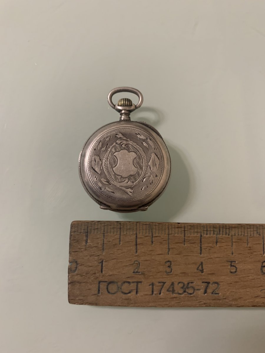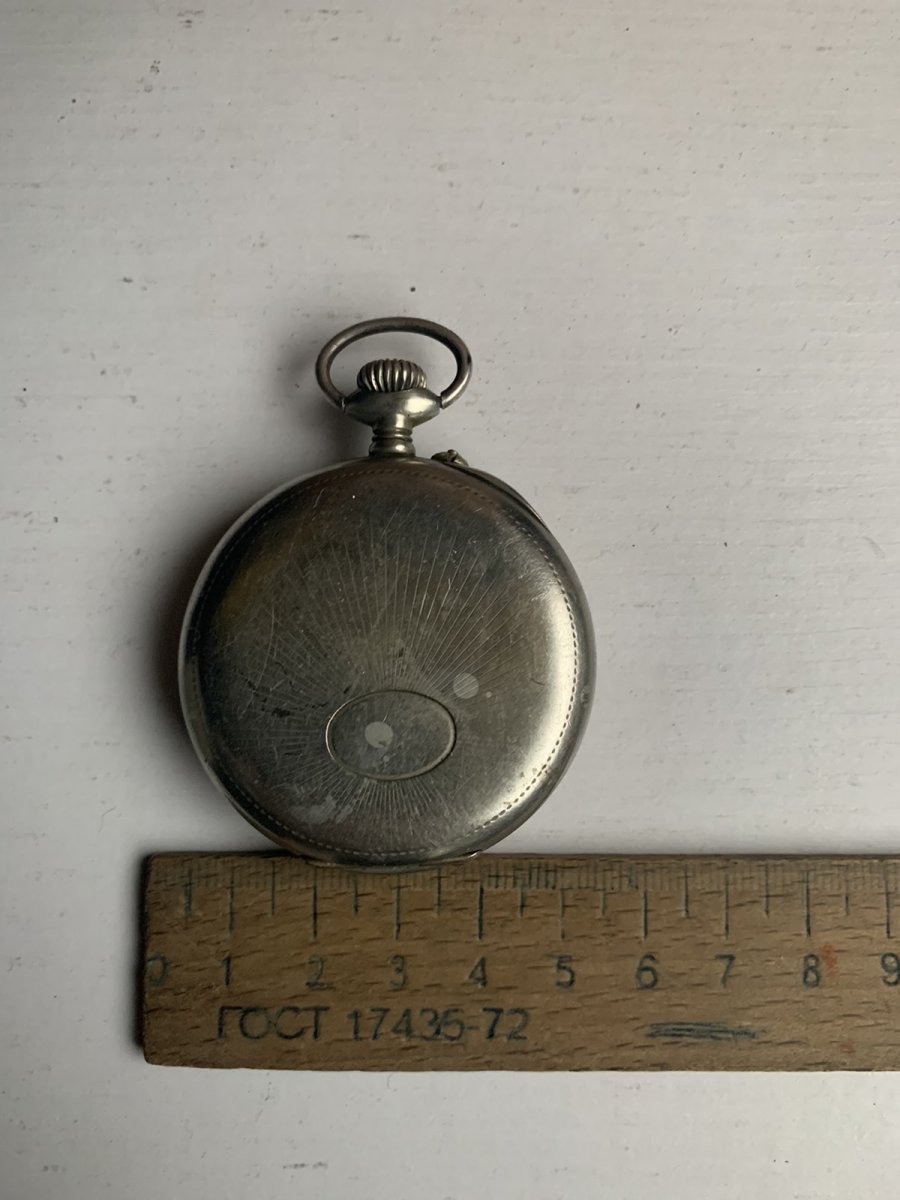 часы №1 .неизвестный шедевр на нормальном анкерном механизме. Перевод стрелок через кнопку, корпус посеребренный...там на крышке клеймо- нужно крупнее и на последнем фото на мехе есть надпись...возможно они что-то прояснят...