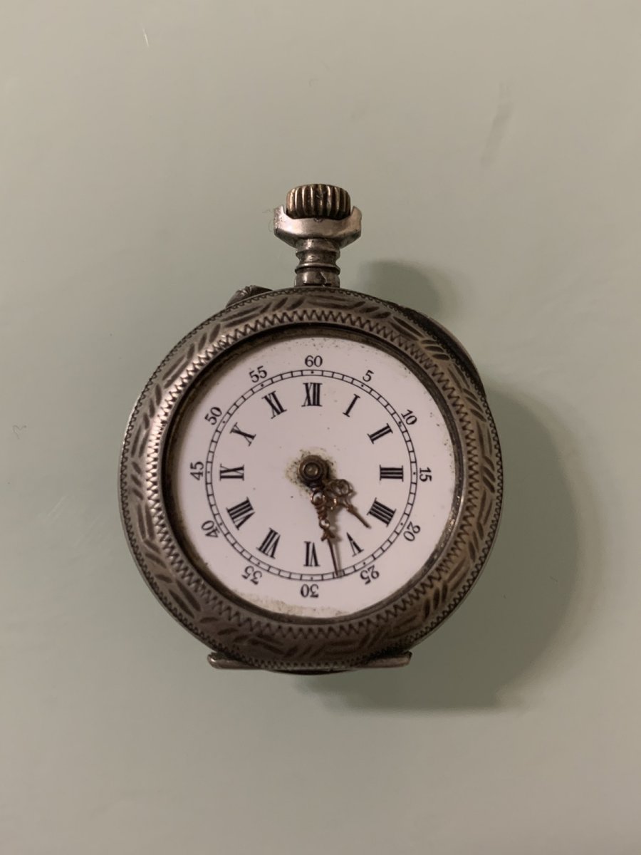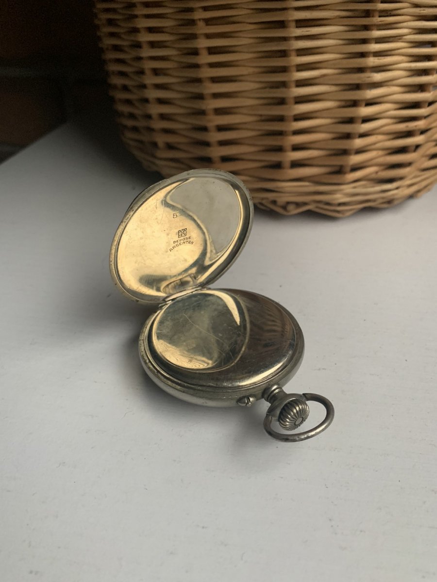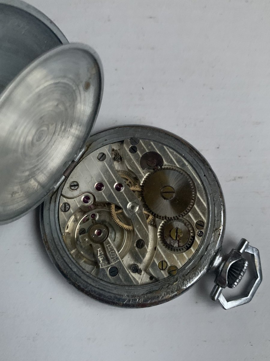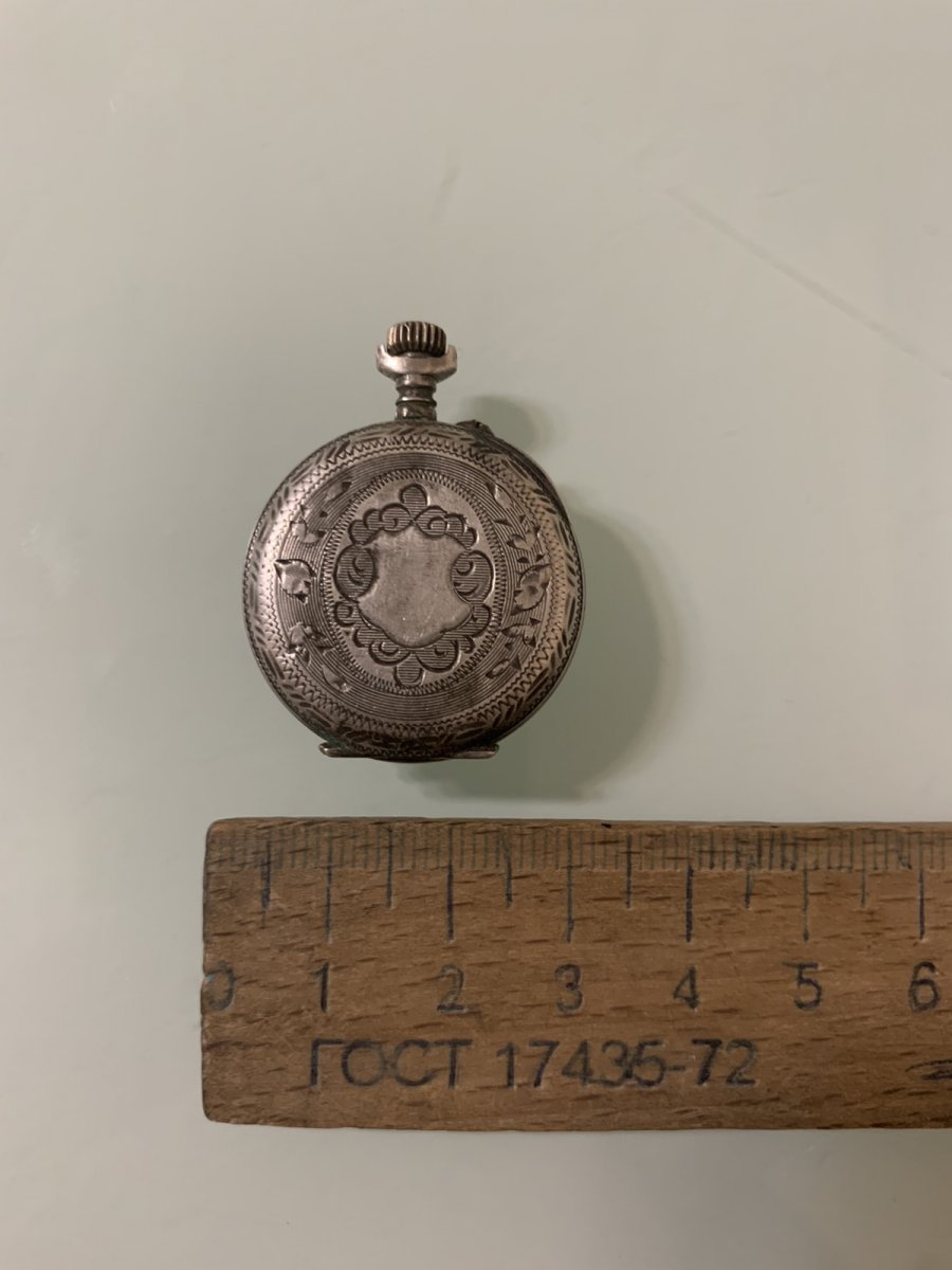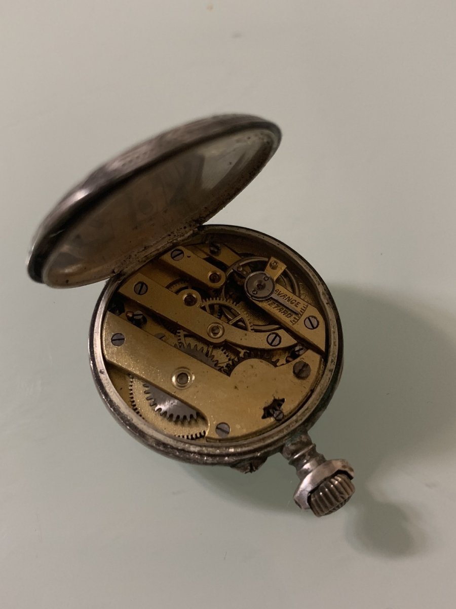 часы №1 .неизвестный шедевр на нормальном анкерном механизме. Перевод стрелок через кнопку, корпус посеребренный...там на крышке клеймо- нужно крупнее и на последнем фото на мехе есть надпись...возможно они что-то прояснят...