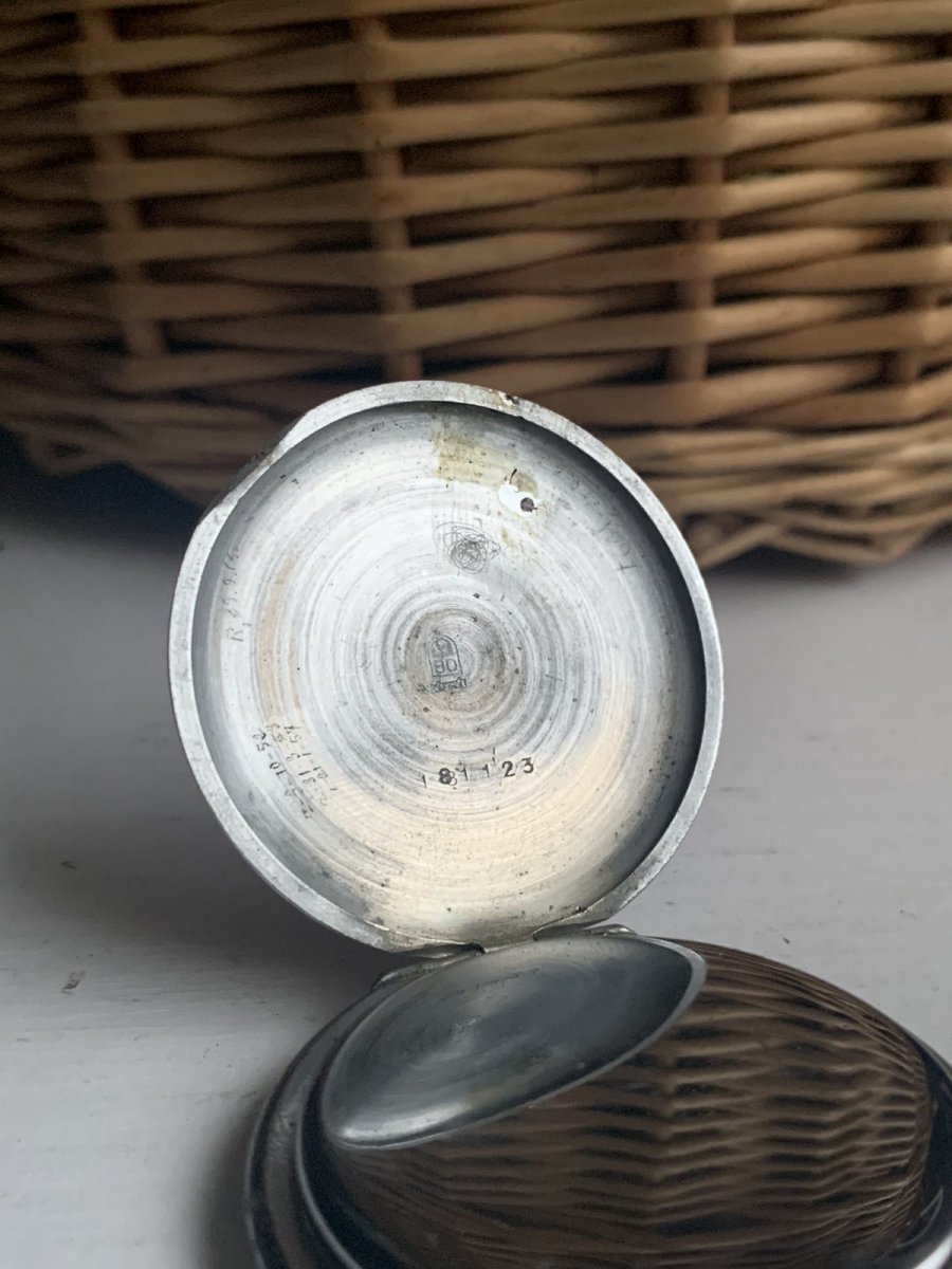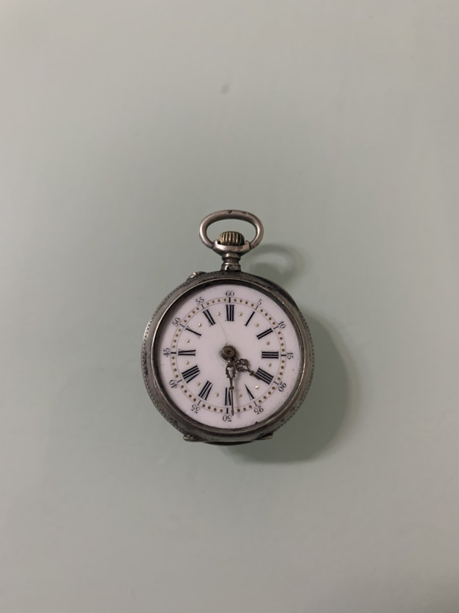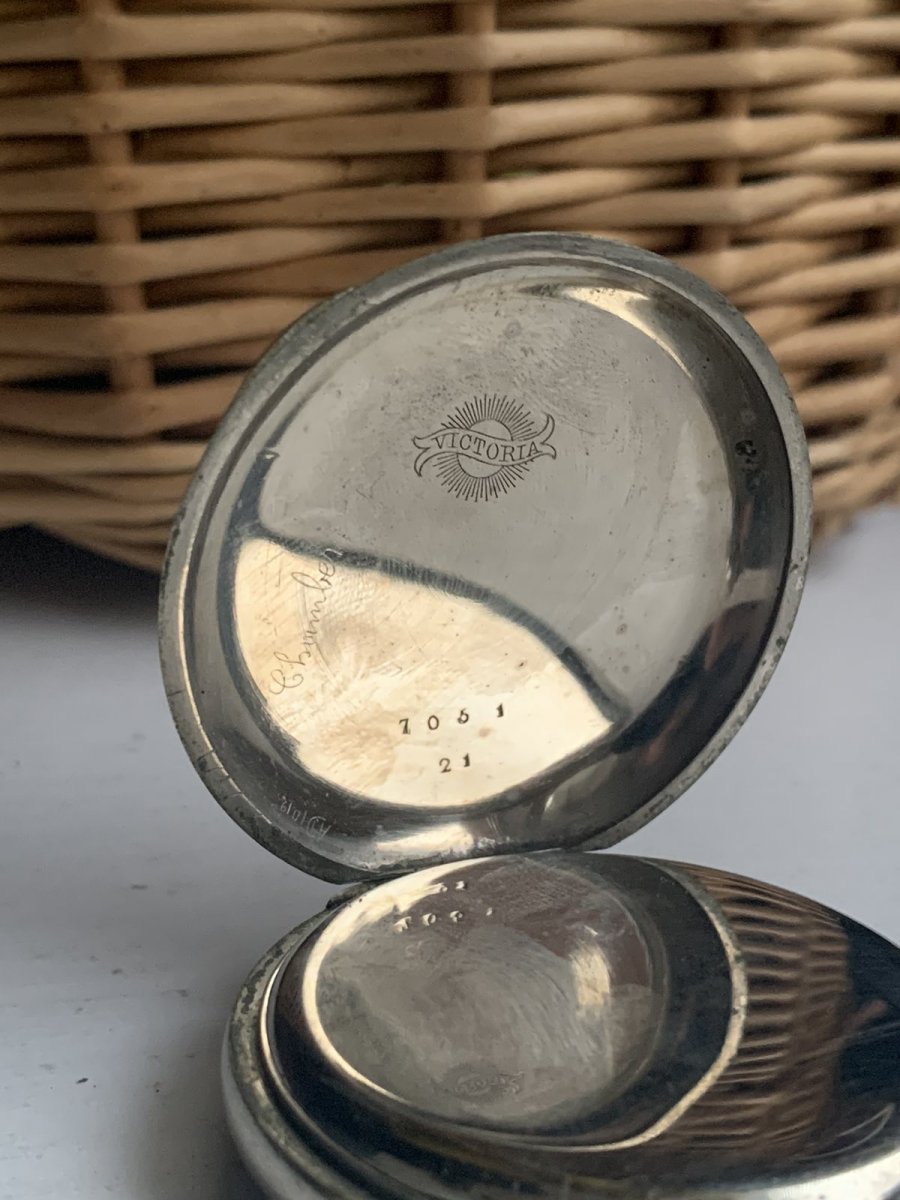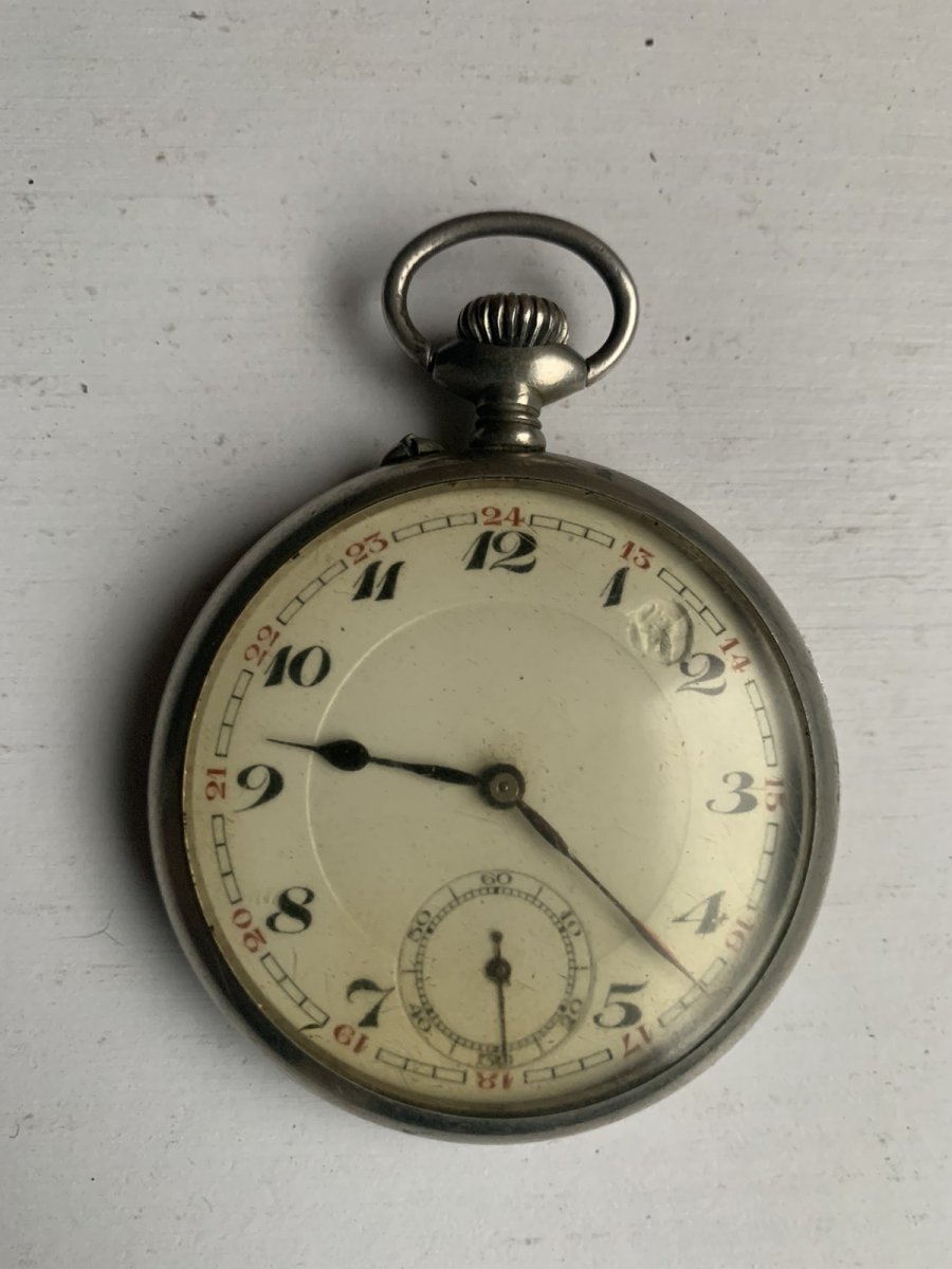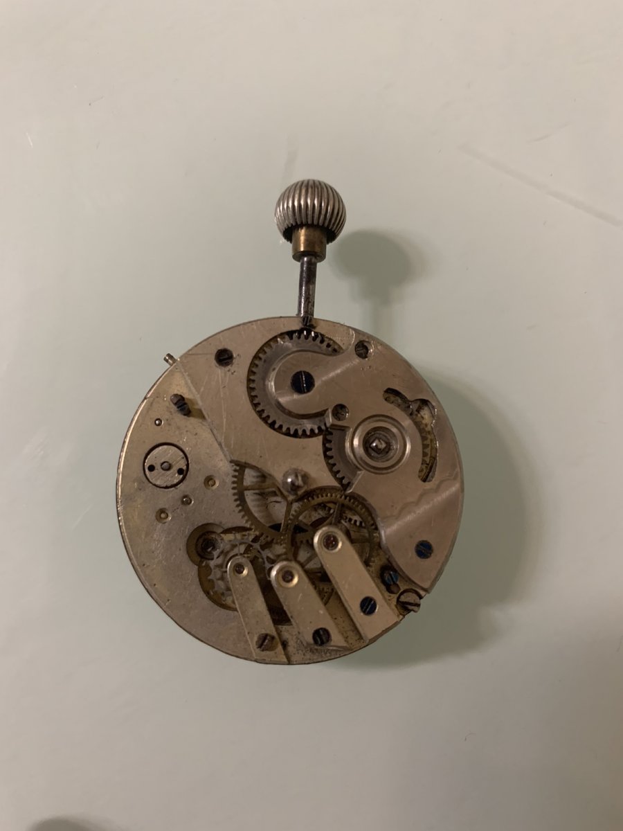 часы №1 .неизвестный шедевр на нормальном анкерном механизме. Перевод стрелок через кнопку, корпус посеребренный...там на крышке клеймо- нужно крупнее и на последнем фото на мехе есть надпись...возможно они что-то прояснят...