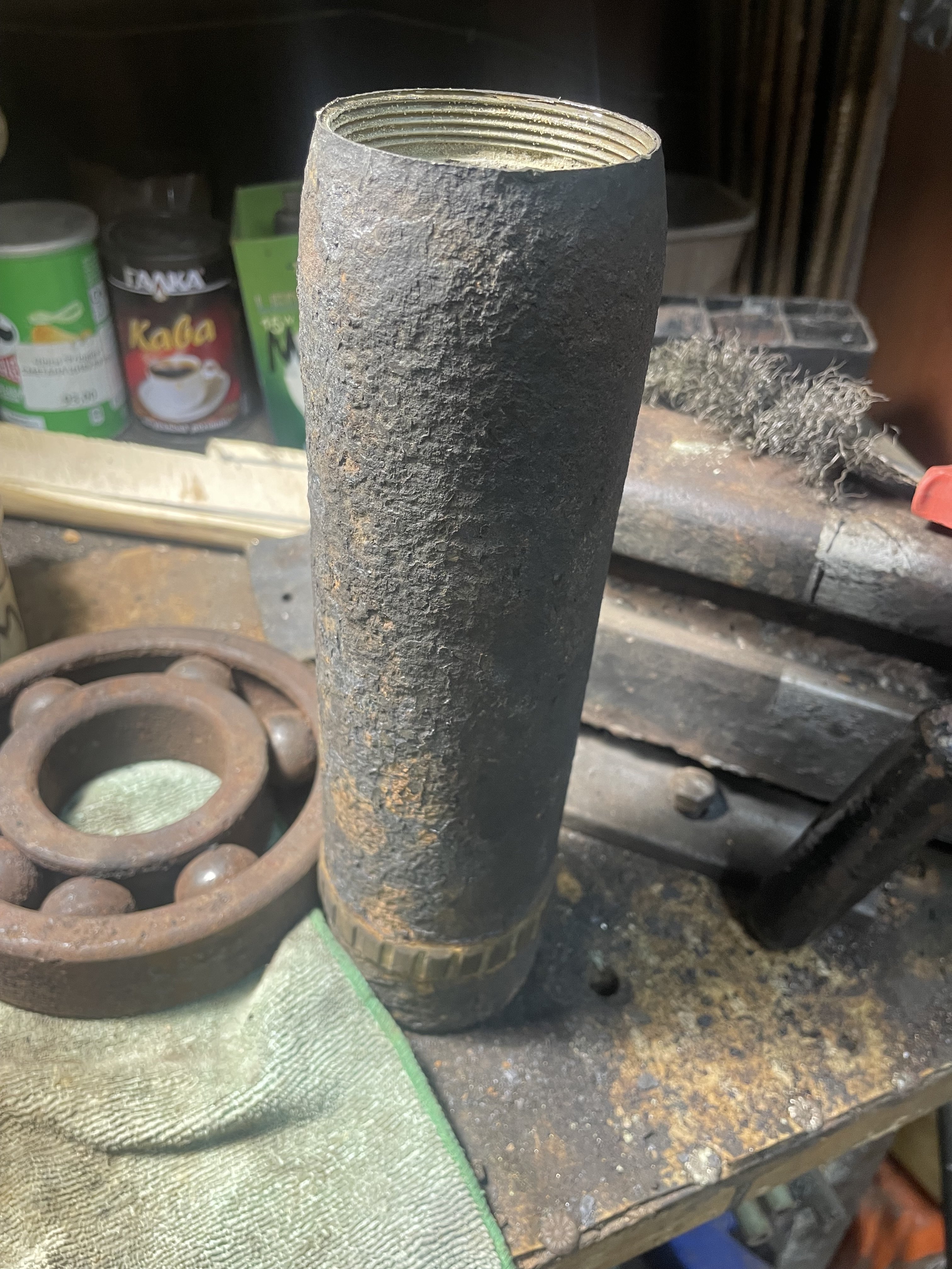 Доброго всім! Дайте інфу по балванці. Стріляний, порожній, клейм ніяких не видно. Копаний на позиціях другої світової. Дякую.