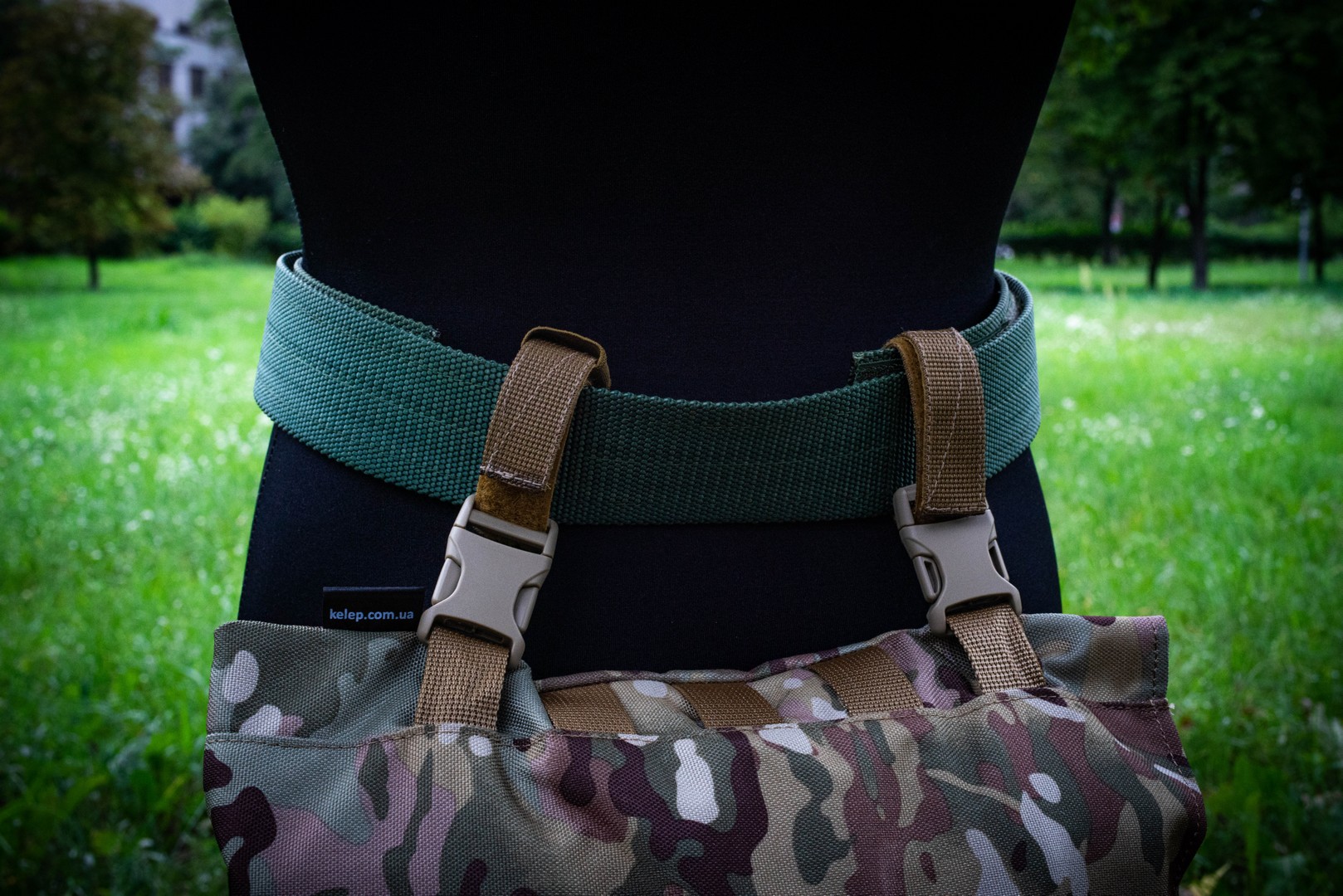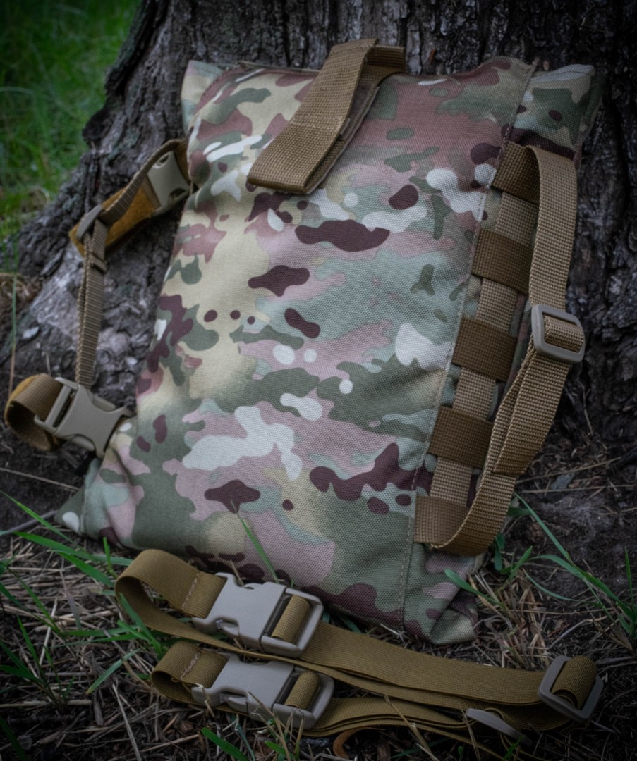 Ми розробили унікальні чохли, які покликані значно економити місце в загальній системі екіпіровки бійця. Підсумок має два варіанти розміщення та відповідні набори елементів для кріплення: 1) На систему MOLLE; 2) За спиною бійця, у вигляді “туристичного сидіння”. В другому варіанті чохол не займає місце іншого спорядження, надає швидкий доступ до носилок та розвантажує вагу на ноги. При цьому не перешкоджає мобільності бійця, дозволяє пересуватись бігом. Слід зазначити, що сидіти на підсумку не завжди зручно (це залежить від того як складені носилки всередині). Тоді, не знімаючи чохол, підтягніть його догори – він не буде заважати сидінню. За допомогою чотирьох фастексів можна відстібнути чохол повністю. Варто сказати, що основна задача чохла не бути сидінням, а виконувати функцію по розвантаженню, та наданню швидкого доступу до ношів. Чохол відкривається одним легким рухом, для цього є спеціальна “розумна” липучка для швидкого доступу до нош. На зовнішній стороні має містку кишеню, в яку можуть бути складені зйомні елементи підсумку, або інші необхідні речі. Сам чохол оснащений системою MOLLE і зйомними стропами для розміщення на рюкзаку чи розгрузці – це перший варіант комплектації підсумка. Другий варіант комплектації – включає перший, тобто має систему кріплення MOLLE, а також додаткові розвантажувальні зйомні стяжки – для поясу, та обхвату ніг. Усі додаткові елементи є зйомними. Чохли виготовлені з якісних матеріалів: використані зносостійкі нейлонові стропи, італійська фурнітура “2М” та корейська “WJ”. Доступні у виконанні з тканин: PolyСordura 900D (MultiCam), Cordura 1000D USA (ACU). Характеристики: Колір: MultiCam/ACU; Розміри: 34х26; Вага: 160 г. Гарантійне обслуговування виробу до нашої Перемоги! Вартість: Підсумок з MOLLE - 450 грн Підсумок з MOLLE + "Туристичне сидіння" - 570 грн
