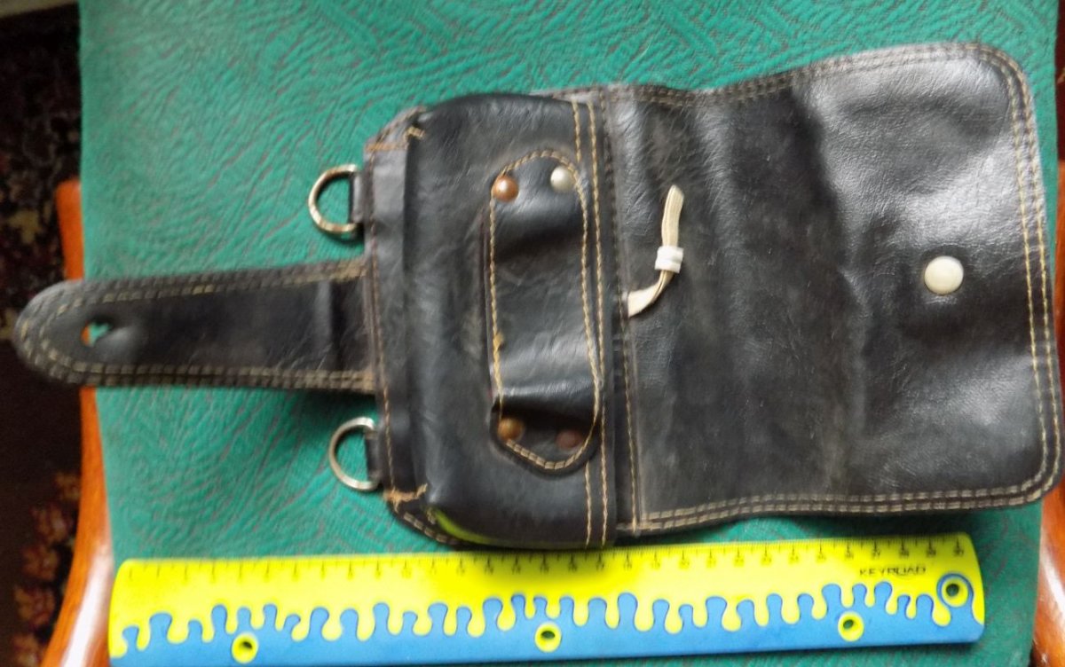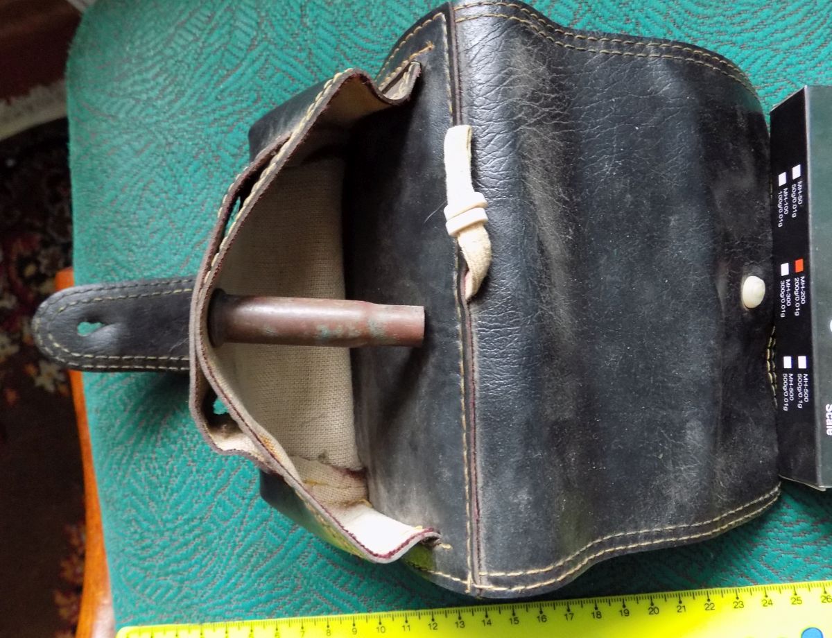 Доброго дня! Родичі купили в селі будинок, наводили порядок і на горищі знайшли майже новий такий девайс зовні схожий на підсумок. Матеріал дермантин(шкірозамінник) пукля пластик, кільця залізо. Цікаво має якесь відношеня до військової амуніції, клейм нема, але виготовлення фабричне.