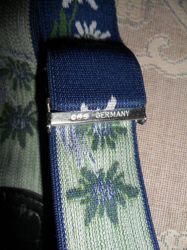 3. Підтяжки широкі на кліпсах CAS Germany колір темно-зелений з едельвейсами повна вільна довжина 118 см, ширина 35 мм легке б/у в доброму стані ціна Продано!
