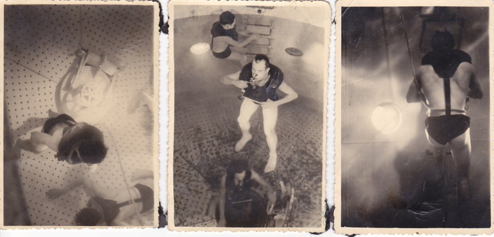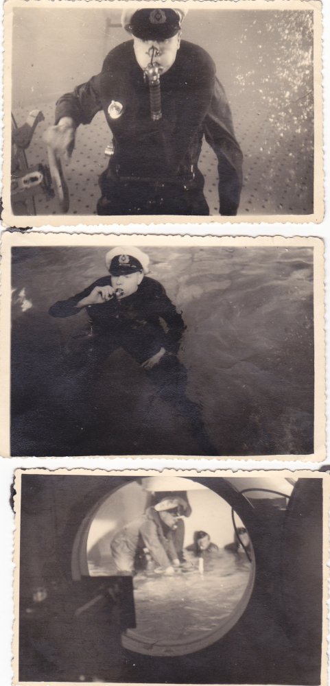 Доброго вечора.Давно маю ці фото і хотів б по можливості взнати,на скільки вони рідкісні,на що вказує чорнильний штамп? Ну і по оригінальності (ніби сумнівів не має,всі крім однієї з маркуванням Agfa Brovira) По тематиці,як я зрозумів,показано навчання при затоплені підводної лодки,якщо помиляюсь-поправте.Дякую.