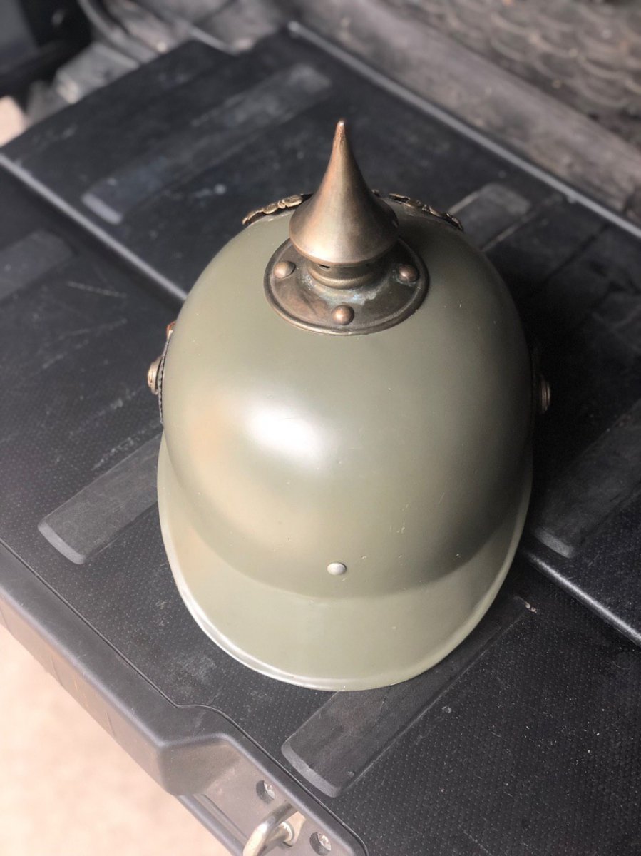 Доброго времени суток! К вашему вниманию на продаже есть вот такой шлем . Сам пикель модели 1915 года, вместо фетра и кожи начали делать стальные модели, ранний прародитель шлема М16. Очень достойная реплика от умелого мастера-реставратора. Правильный окрас - светлый фельдграу, фурнитура качественная реплика. Цена вопроса 2500 гривен.