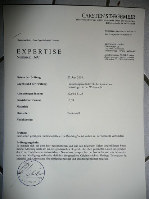 Эксперт - тоже человек... и может иметь собств. мнение, иногда и неправильное.... Единственный и беспрекословный МУДАК в мире экспертиз- это Штегемайер, Дортмунд. (Staegemaier) Он сознательно или по безграммотности шлепает экспертизы на фуфель. Можно нассать ему в глаза - показывая фуфель с его экспертизой, но он будет утверждать, что все вокруг дауны, один он понимает в знаках. Имел печальный опыт....