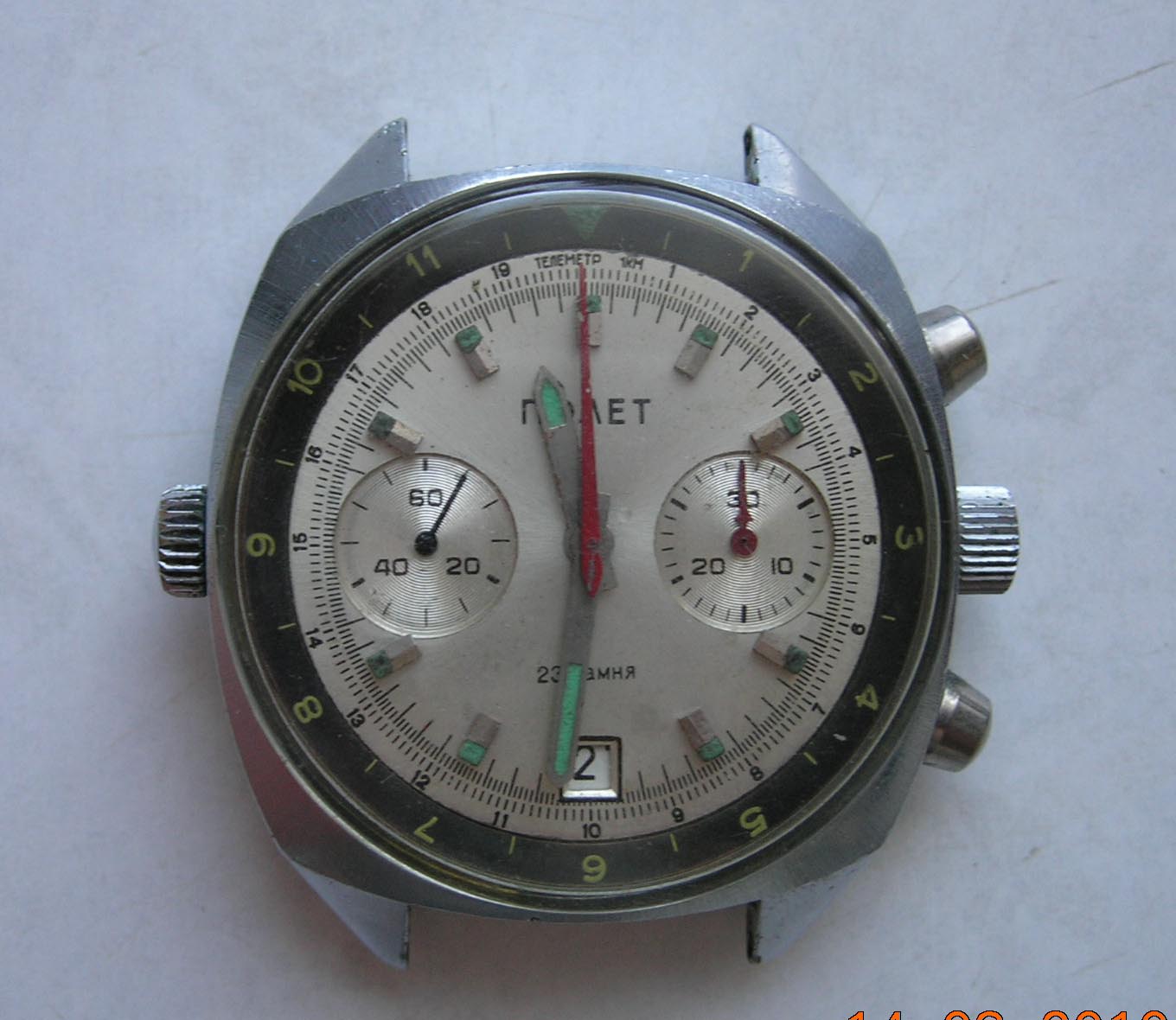 Представляю на продажу Полет 3133. Пилотский хронограф, цифер в норме, телеметрическая шкала.Фосфор на стелках и цифере- работает. Верхняя кнопка пуск и останов секундомера, нижняя- сброс.Вторая шкала подвижная.