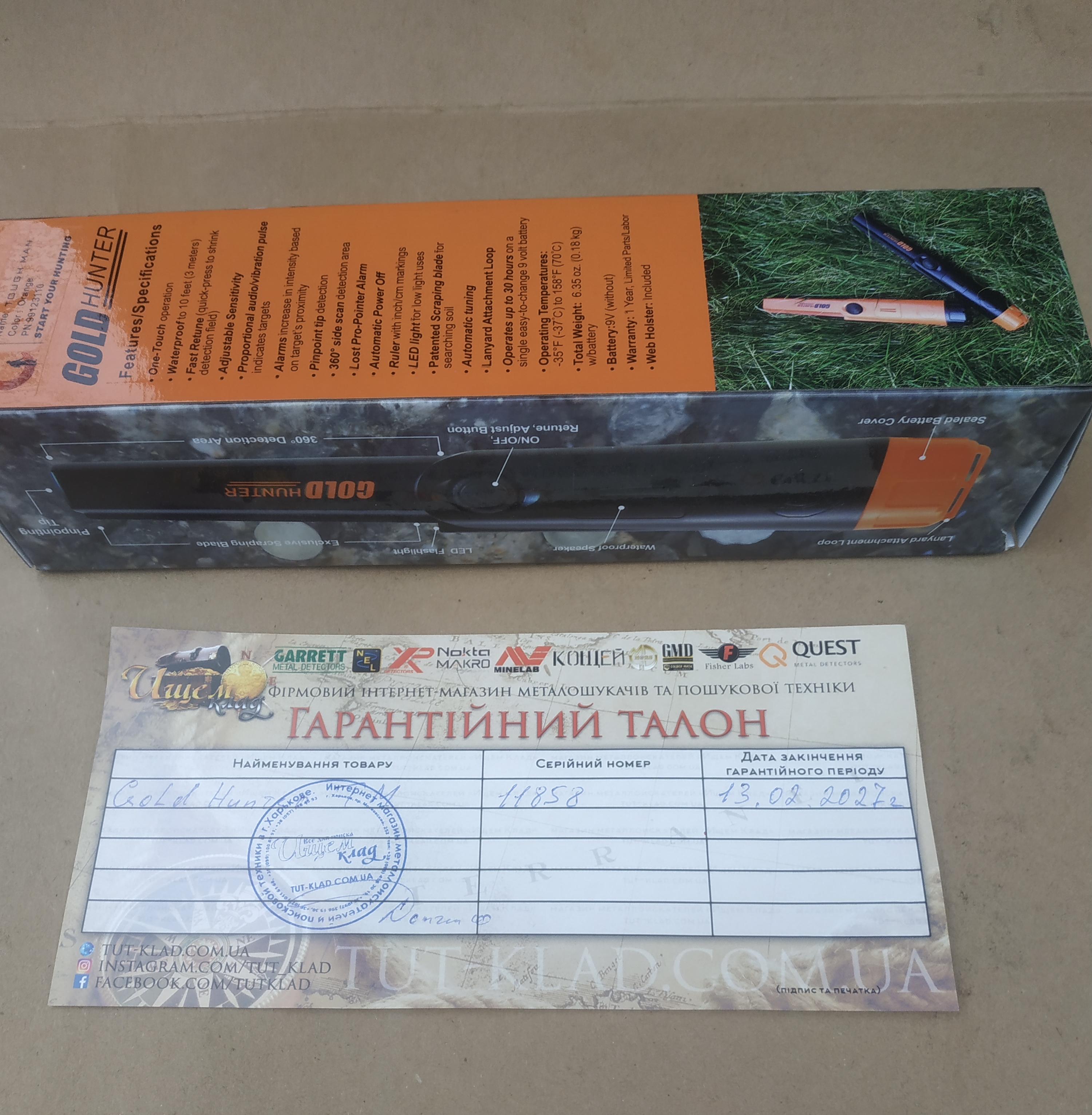 Пинпоинтер Gold Hunter TM Повністю новий, в використанні не був. На гарантії !!! Основные параметры: Защита от воды: подводный Звуковой отклик: Есть Вибро отклик: Есть Настройка чувствительности: Есть Длина: 23 см Вес: 180 грамм Питание: 9V Ціна 1850 грн