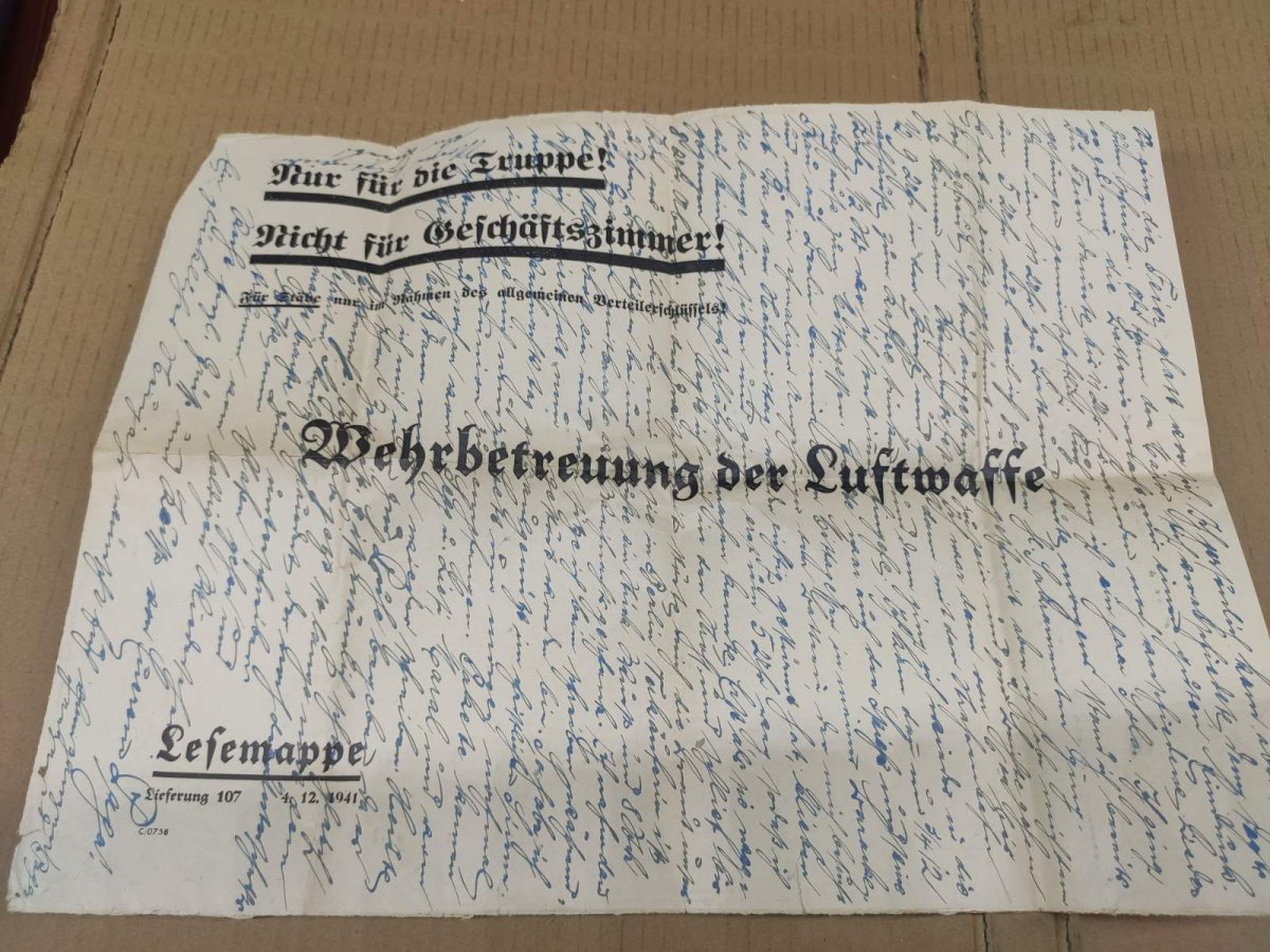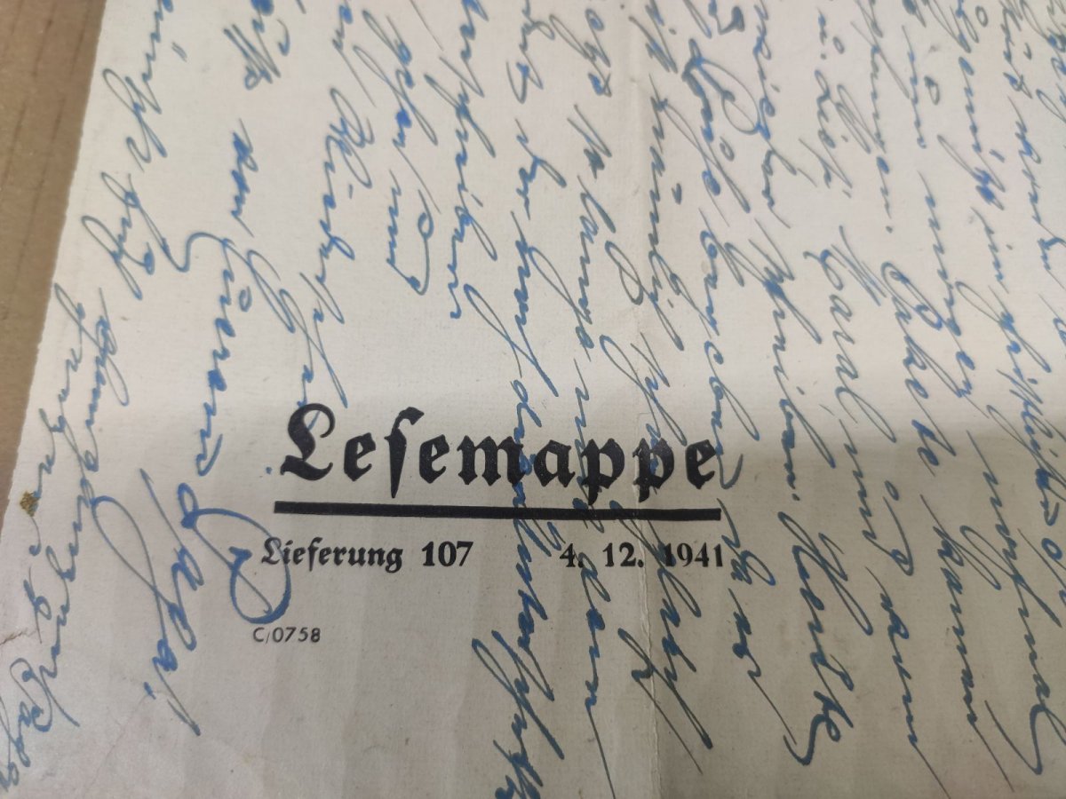 на бланке напеяатано: Nur für die Truppe!- только для войсковой части Nicht für Geschäftszimmer!- не для деловой комнаты Für Stäbe im Rahmen der Verteilerschlüssels - для штабов в рамках распределнтельного ключа Wehrbetreuung der Luftwaffe - оборонная поддержка ВВС Lesemappe - папка для чтения Lieferung 107 4.12.1941 - доставка 107 4.12.1941