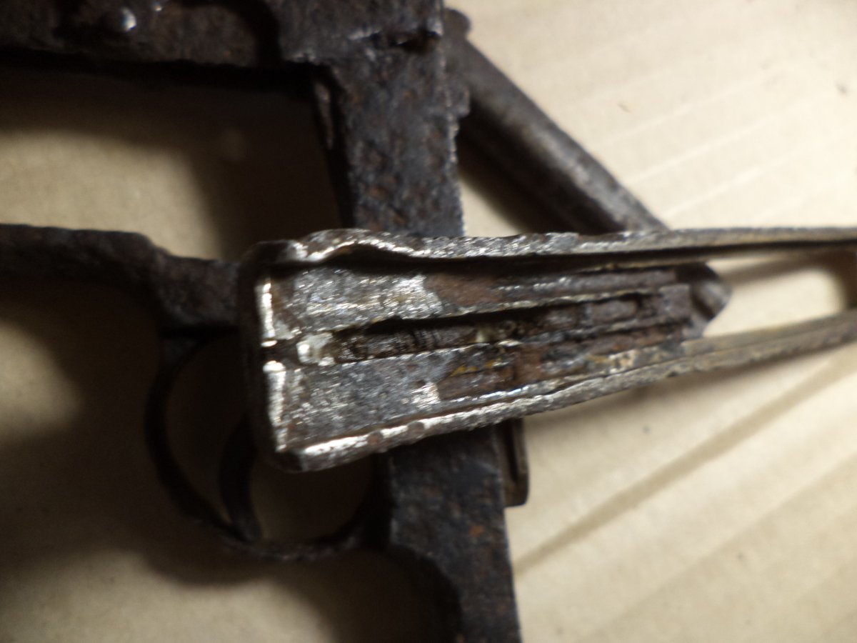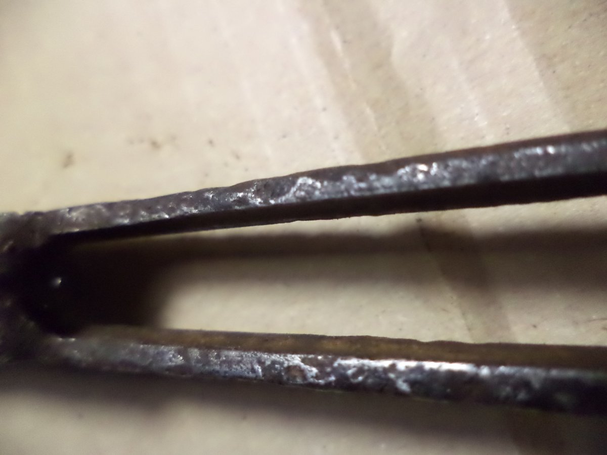 бережная разборка с помощью кувалдочки и зубильца) а если серьезно, то предмет скорее всего из дороги, где просто по нему проехались в то время,что его так покосило.