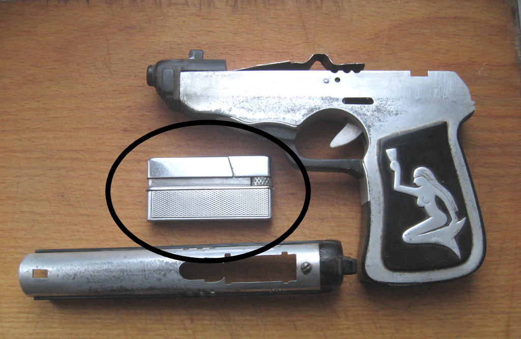 Приветствую. Сама зажигалка (выделил на фото) вещь классная и надежная. У самого такая была в конце 80-х. Ну а "пекаль" - думаю это народное творчество, не исключаю, что зекпром. Саму зажигалку оценил-бы не меньше 200 грн. За остальное промолчу - на любителя. P.S. С нижней части зажигалки снимите кожух - найдете гнездо для заправки газом. Баллончики с газом купить не проблема.