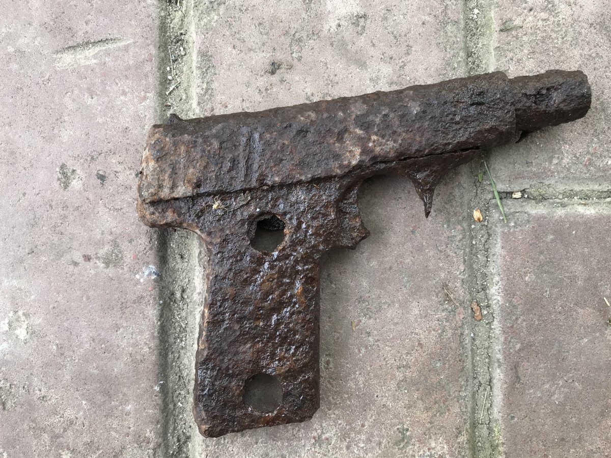 помогите определить что это за пистолет, выкопал отец в огороде)