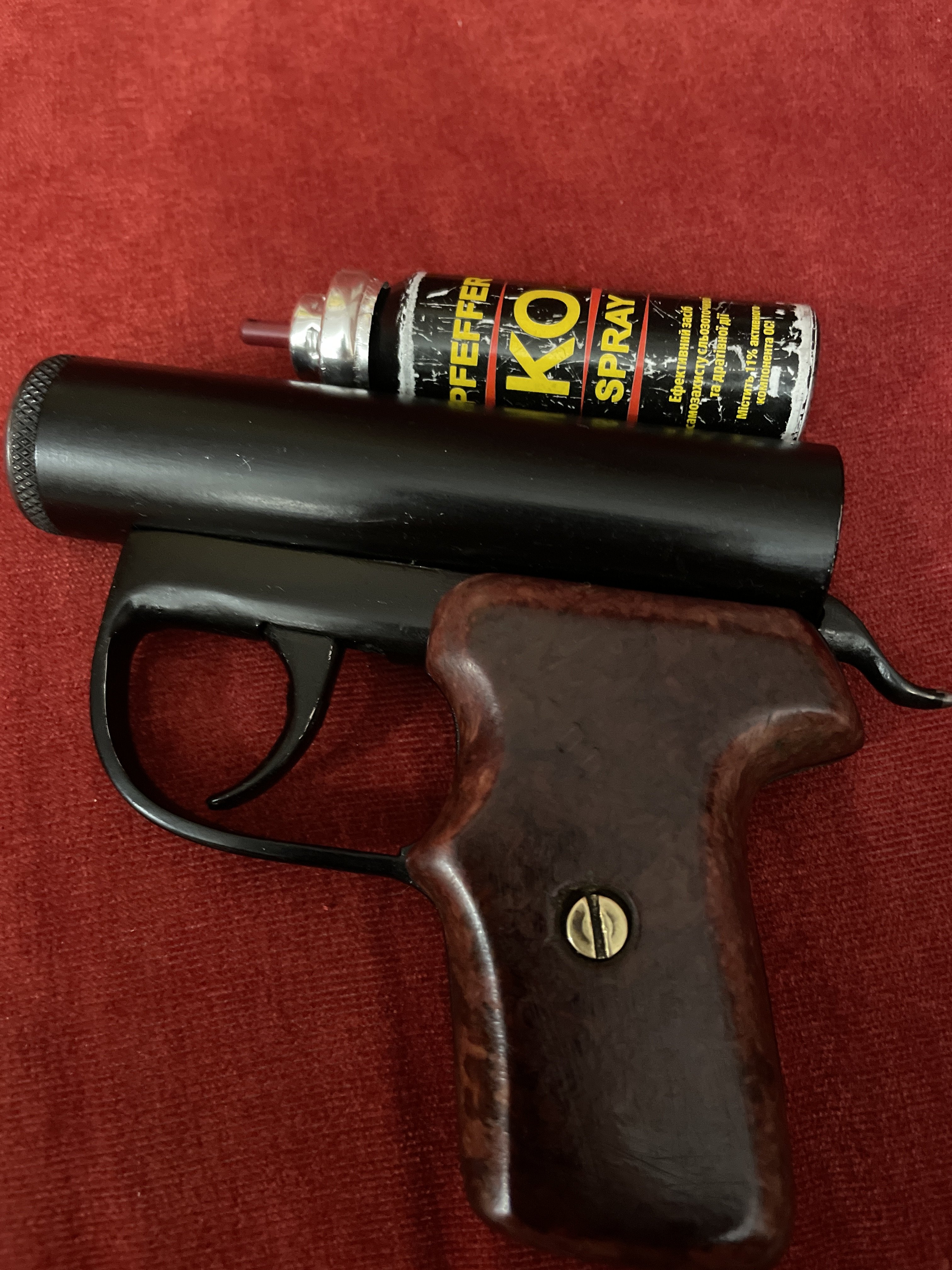 На прохання Камрада - цікавий Девайс - пістолет під газовий балон. В ньому зараз є балон - КО 25 мл. Матеріал - сталь. Ручка - бакеліт. Не потребує дозволу. Маєте пістолет який зовні не дає відповіді - ЩО на вас направили - дуло - 9 мм. Дуже зручно лежить в руці. Має правильне направлення газу. Заміна балона - 3-4 секунди. При натисканні вниз на курок ззаду балон випадає та заміняєте на новий..... з урахуванням терміну дії речовини балона у Вас буде не тільки 4 сек, а 4 хвилини для заміни, а також робити ВСЕ що бажаєте з терпілою..... При натисканні на спуск струя виходить в залежності від секунл нажиму. Струя має виліт до 2,5 м. В середньому при дозуванні балона вистачає на 4-7 разів. Простий надійний карманний варіант. Якщо є сумніви придбання - цей екземпляр з даним механізмом єдиний в світі..... Навряд буде повтор. Пластикові масові пшикалки мають таку ж ціну..... Простий, надійний, ефективний. Ціна 3800.