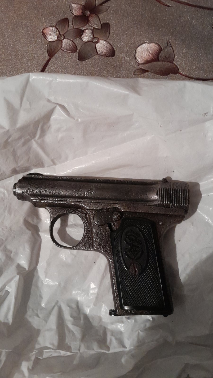 Вітаю.Це т.з. пізня "нормальна" випускалася у двох кал. 6.35мм і 7.65мм.Для точного визначення можна поміряти довжину пістолета:7.65мм-140мм;6.35мм-125мм