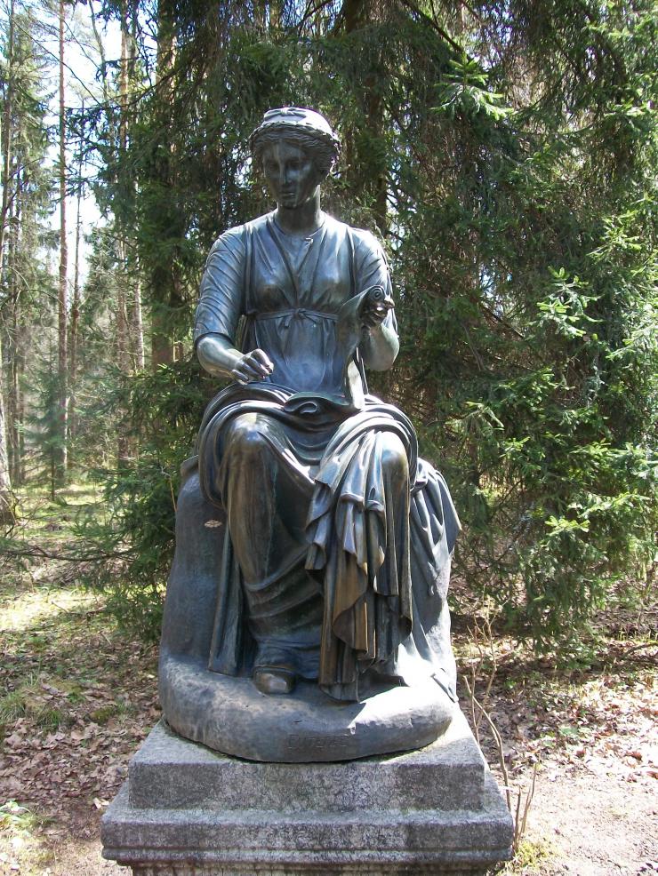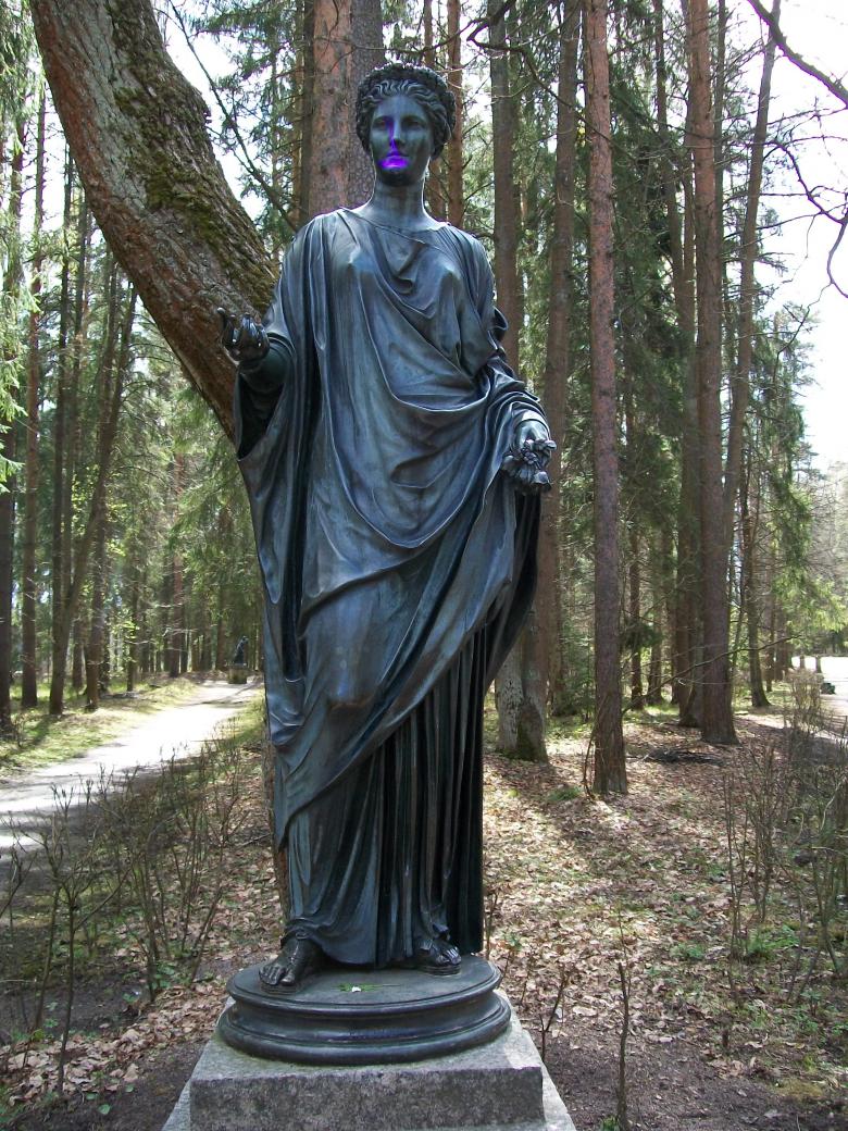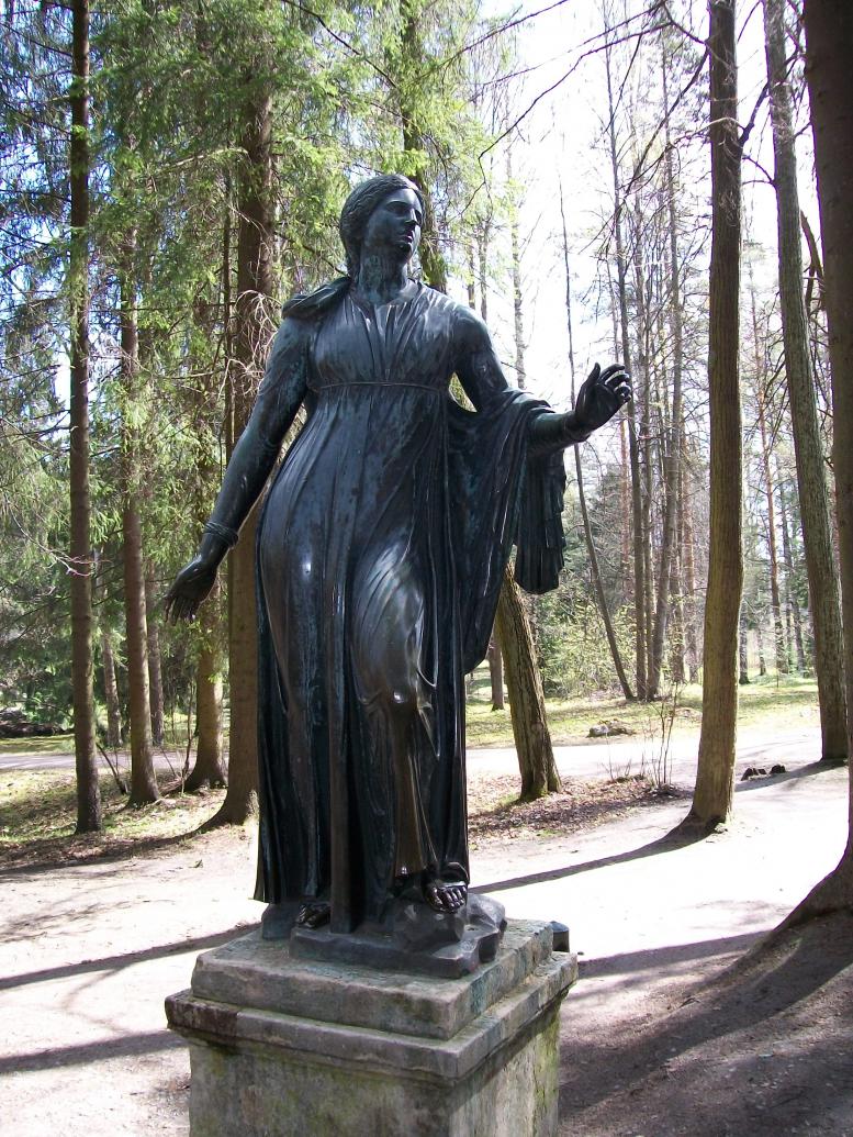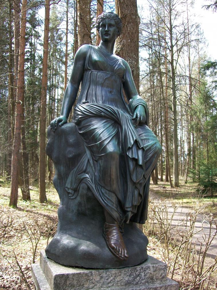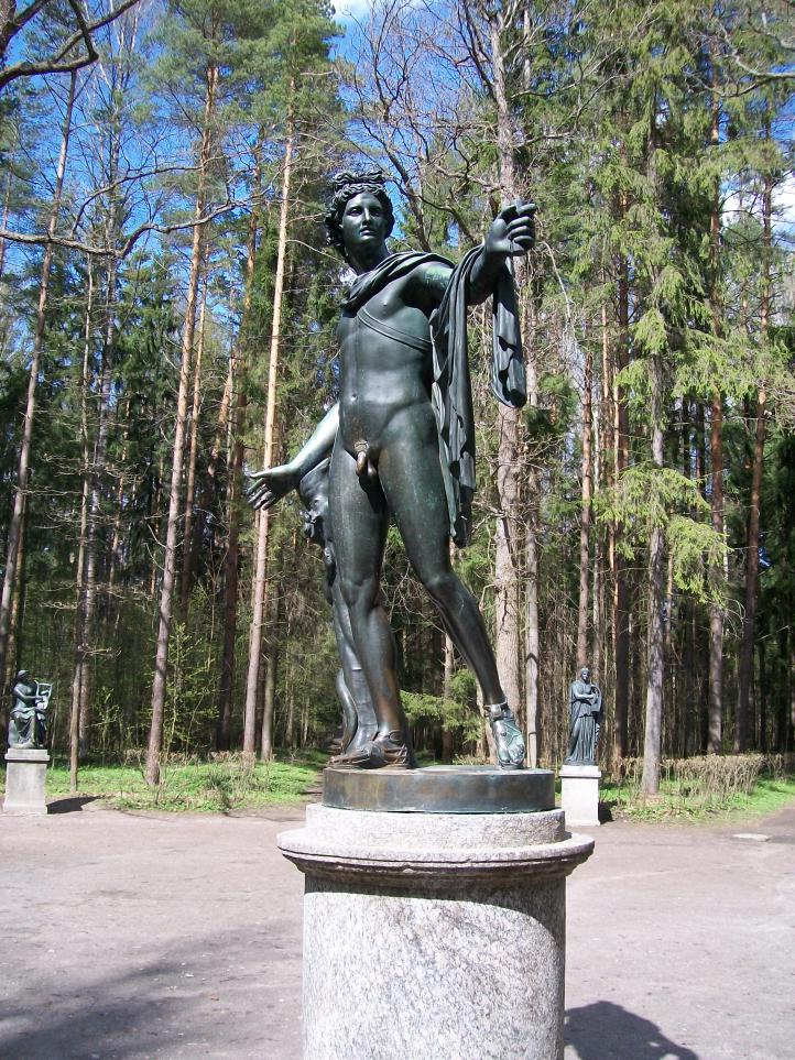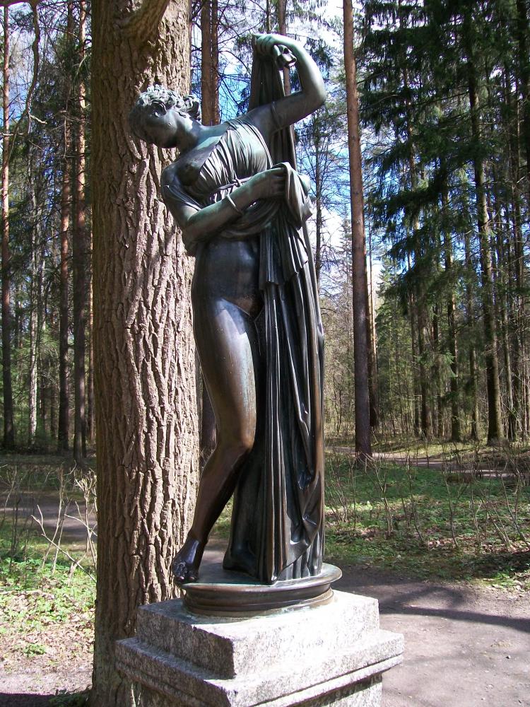 Посреди леса , т.е. парка какие-то полуграции (полудевочки)т.е. нимфы и еще кто-то (наверно роскошный мальчик)... P.S. Извините , музыкой навеяло...