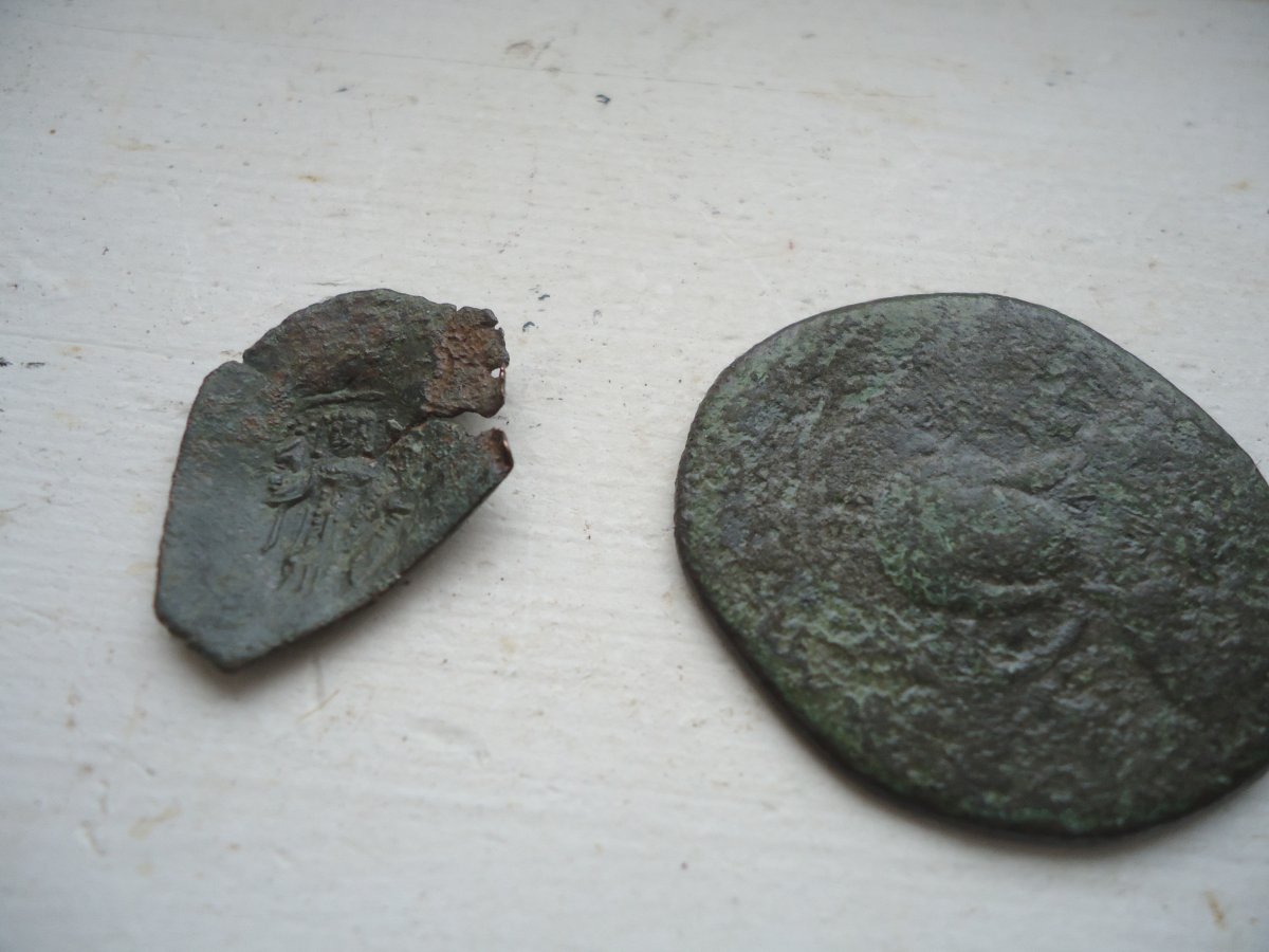 На 6-7 фото, Візантія, 4-5 ст н.е. На аверсі портрет Базилевса, царя. Але в дуже плачевному стані...П.С. Вибачаюсь, лик І.Христа.