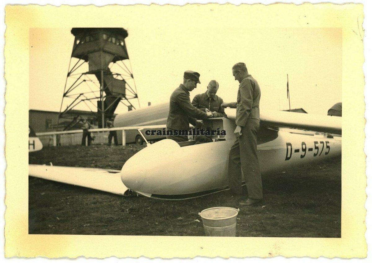 2) Segelflieger eines Fliegerkorps mit Segelflugzeug DFS Weihe "D-9-575" bei Rhön-Wettbewerb, 1939