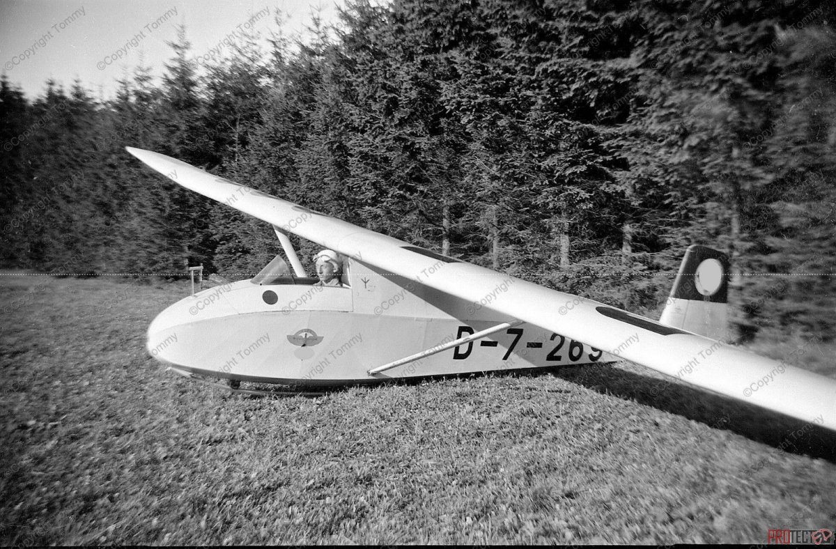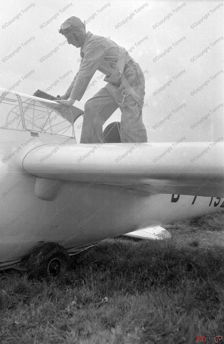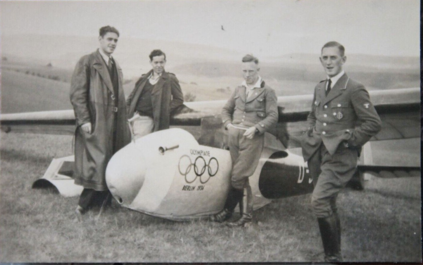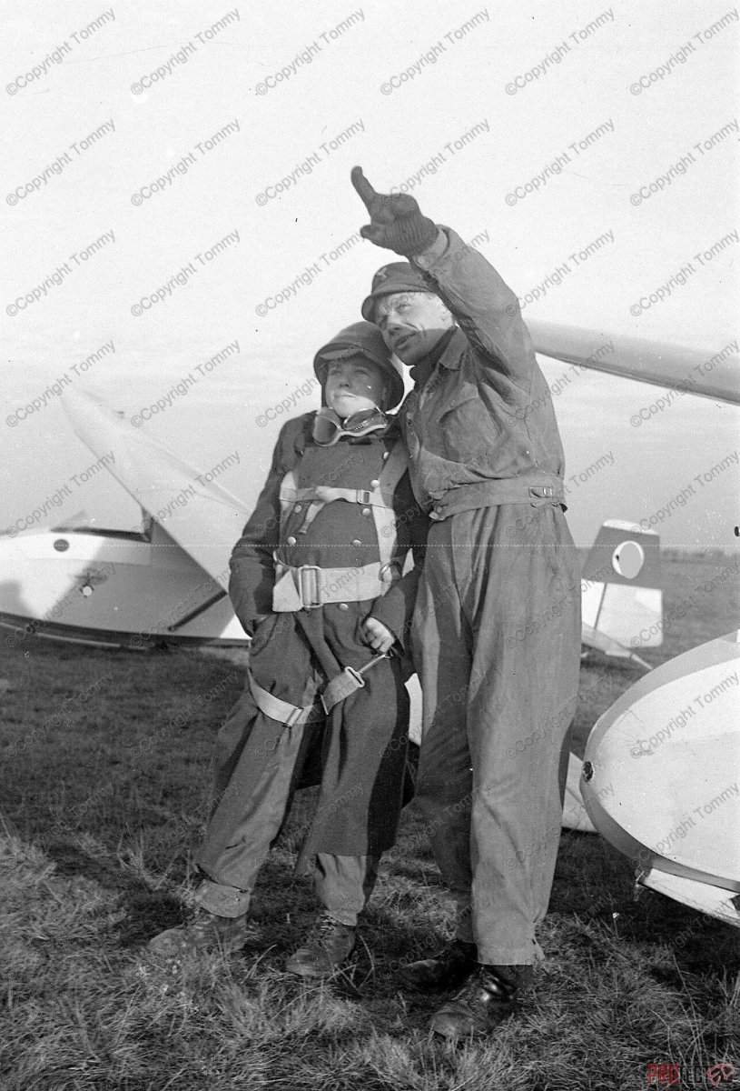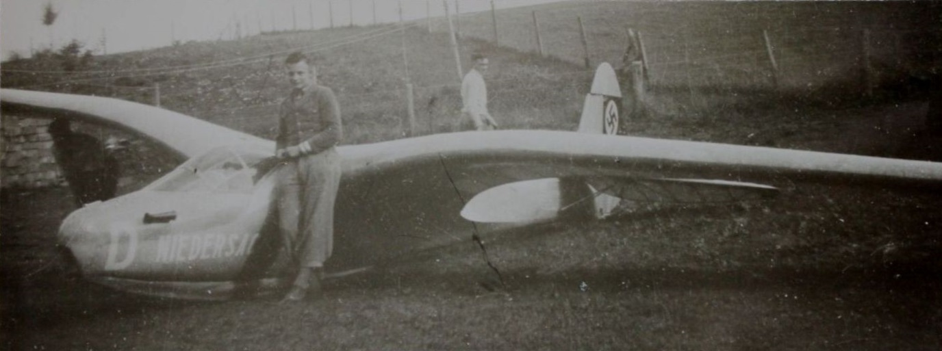 1) Pilot Bruno Boy (später im März 1940 gefallen als Bf 109 Pilot der J.G.26) mit Segelflugzeug München Mü 13 "D-9-524", ca. 1939