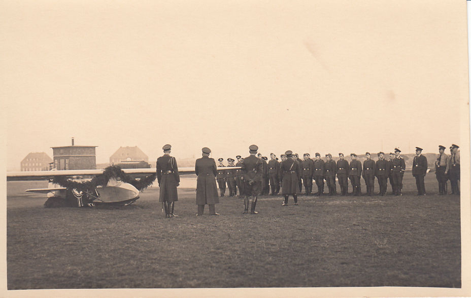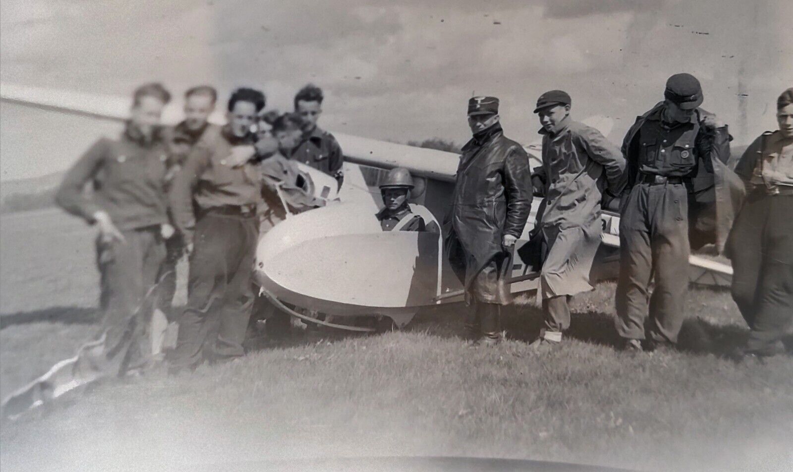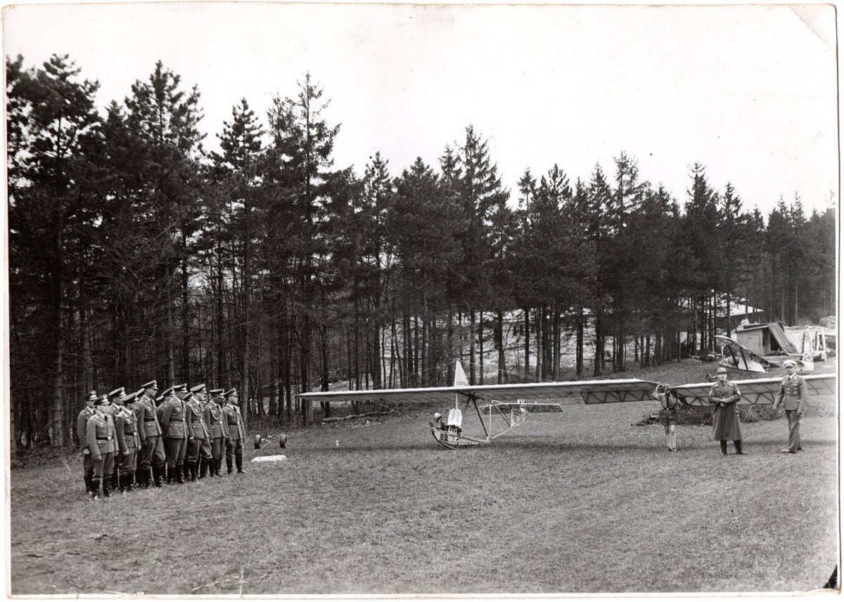2) Einweihung der Lastensegler Schule in Hildesheim 1940/41. Das ist die Beschriftung auf einem Bild dieser Fotoserie. Links Grunau Baby IIb.