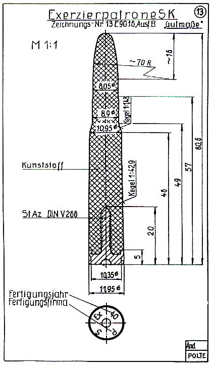 В 1930-х годах в Германии, с целью экономии цветного металла, был разработан патрон, изготовленный из пластика с установленной на штифте стальной омедненной донной частью. Данный патрон состоял на вооружении под индексом Exerzierpatrone SK.Но здесь больше похоже на 30-06 SPRINGFIELD